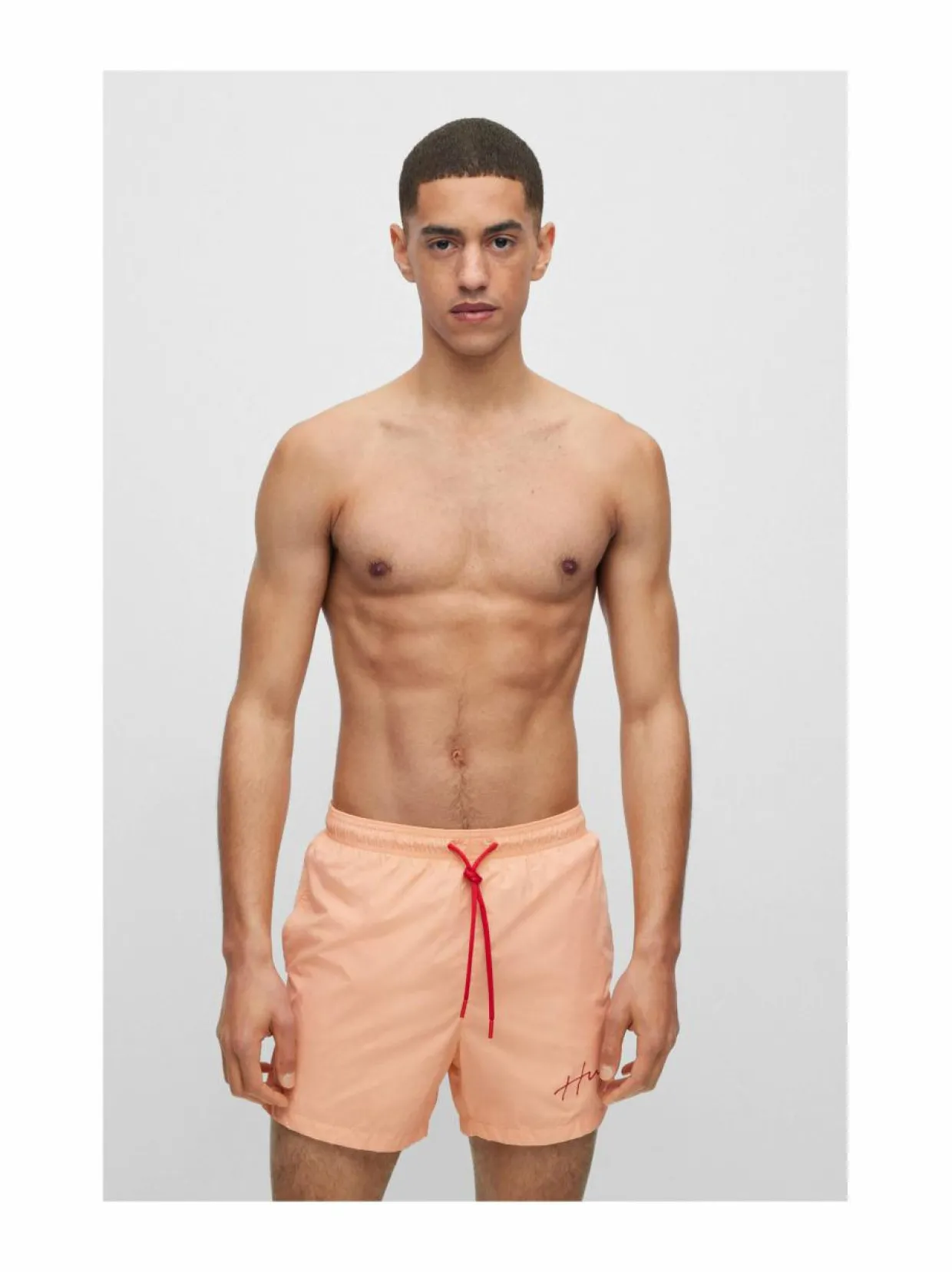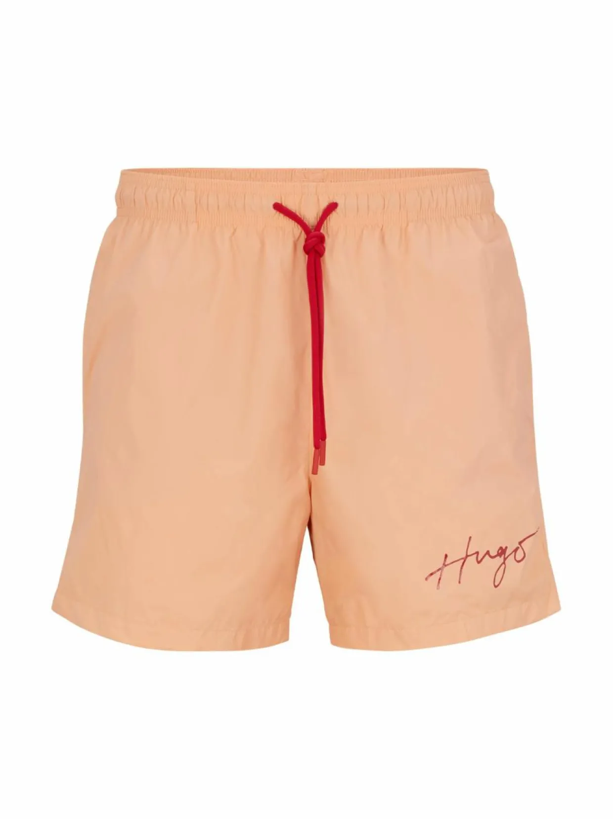 Uimashortsit takataskulla ja kiristysnauhoilla. Yhtä lahjetta somistaa Hugo signature -printti.