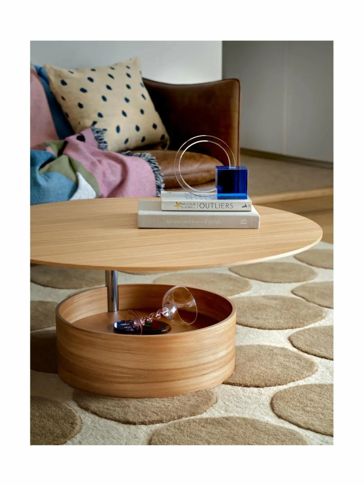 Pöydän on suunnitellut suomalainen puuseppä Antrei Hartikainen, joka kertoo saaneensa pöydän muotoon innoituksen lumpeenlehdistä. Tämän pöydän kauneus piilee sen yksinkertaisuudessa ja nerokkaassa yhdistelmässä, jonka ansiosta pöytälevy näyttää ikään kuin leijuvan ilmassa – samaan tapaan kuin lumpeenlehdet kelluvat veden pinnalla.Sohvapöydän nimi Parasol viittaa leikkisästi aurinkovarjoihin, englanniksi ”parasol”. Pöydän jalusta nimittäin toimii samalla säilytystilana vaikkapa viltille, lasten leluille tai lukemistaan odottaville aikakausilehdille. Esineet eivät ole täysin piilossa, mutta kuitenkin suojassa varjon alla. Tämä sohvapöytä on enemmän kuin vain huonekalu – se on taiteellinen elementti, joka tuo sisustukseesi modernia tyylikkyyttä. Toimitetaan osissa. Mitat: Halkaisija 90 cm ja korkeus 37,2 cm.