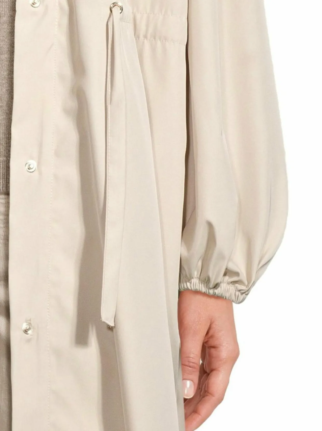 Emme Marella vaatemerkin Pasqua-takki on suunniteltu mukavaan istuvuuteen. Siinä on kiinteä huppu, piilotettu nepparisulku ja kiristysmahdollisuus vyötäröllä. Hartialinja on madallettu rennon siluetin korostamiseksi. Tämä takki sopii erinomaisesti välikauteen.