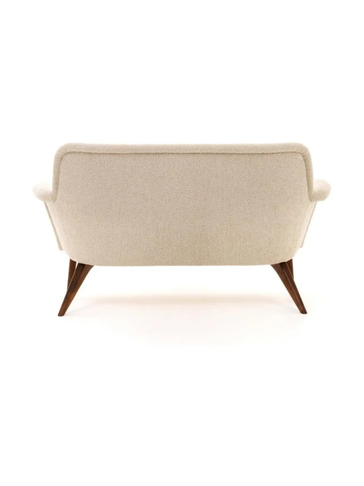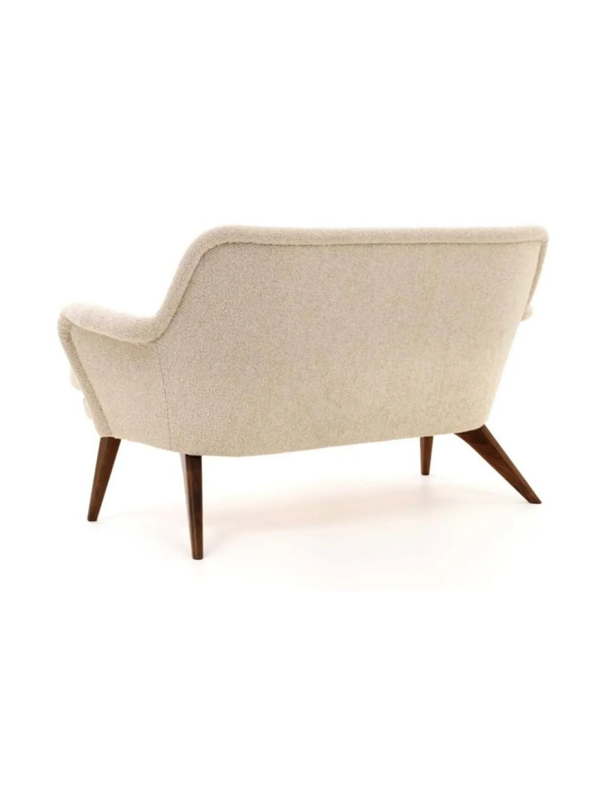Tässä Pedro sohvassa on pähkinäpuiset jalat ja ylellisen kuohkea Lamm villasekoitekangasverhoilu.