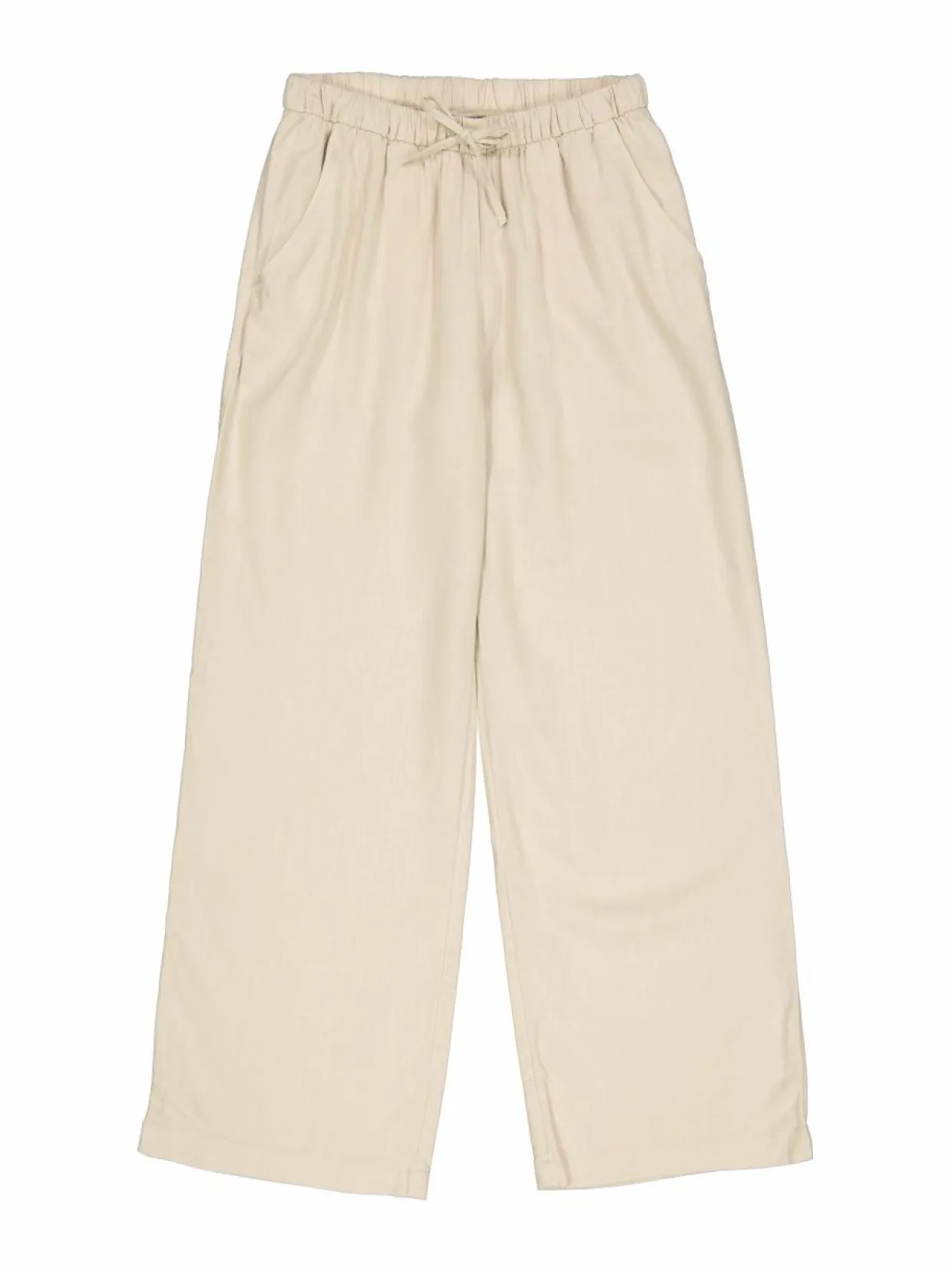 Lindexin kesäkäyttöön sopivat housut, joissa on leveät lahkeet. Mukava joustava vyötärö kiristysnyörillä ja sivutaskut lisäävät käyttömukavuutta. Valmistettu hengittävästä pellavasta ja pehmeästä OnceMore®-viskoosista.