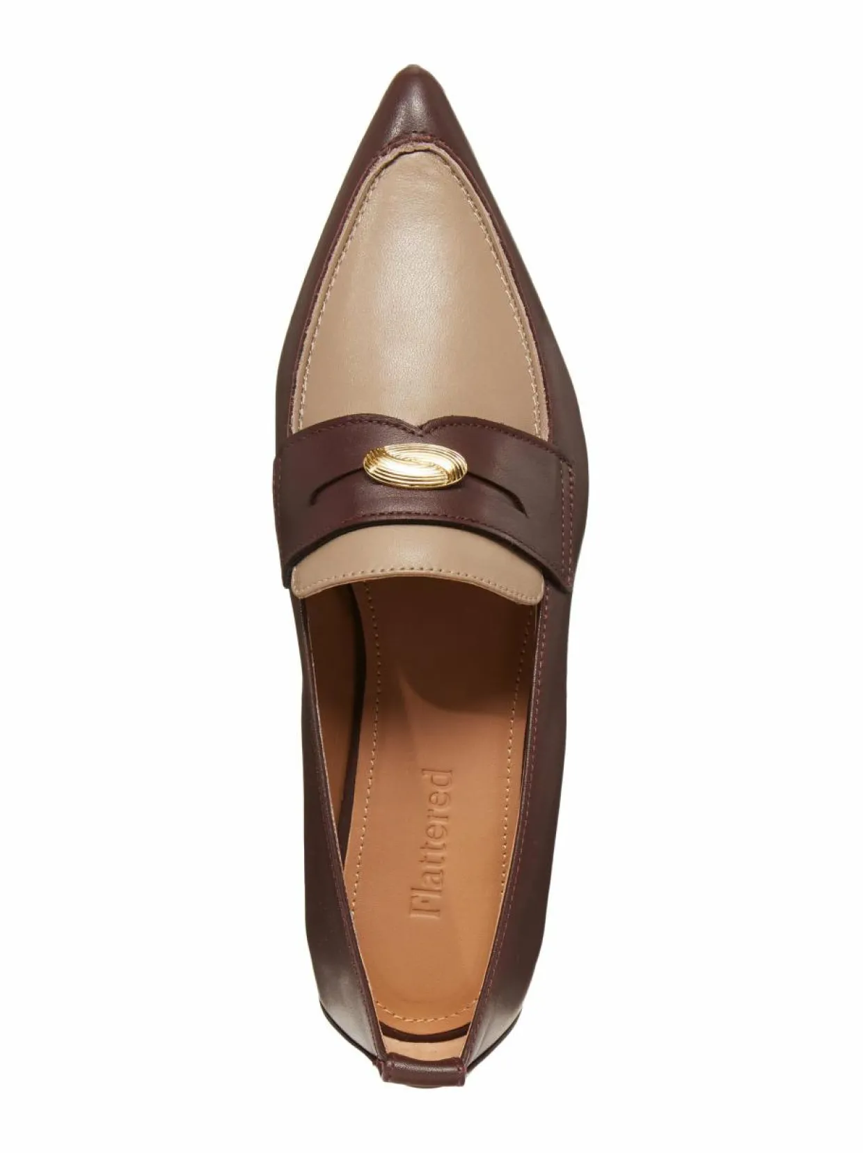 Nämä elegantit ja ajattomat kengät tuovat hienostuneisuutta mihin tahansa asuun. Flattered-brändin suunnittelemat loaferit on valmistettu korkealaatuisesta lehmännahasta. Sisäpuoli on vuorattu pehmeällä vuohennahalla, joka tuntuu miellyttävältä jalassa ja mukautuu jalkasi muotoon. Kenkien terävä kärki ja klassinen kaksivärinen design antavat niille modernin ilmeen, joka erottuu edukseen. Koristeellinen kultainen yksityiskohta viimeistelee tyylikkään ulkonäön.
