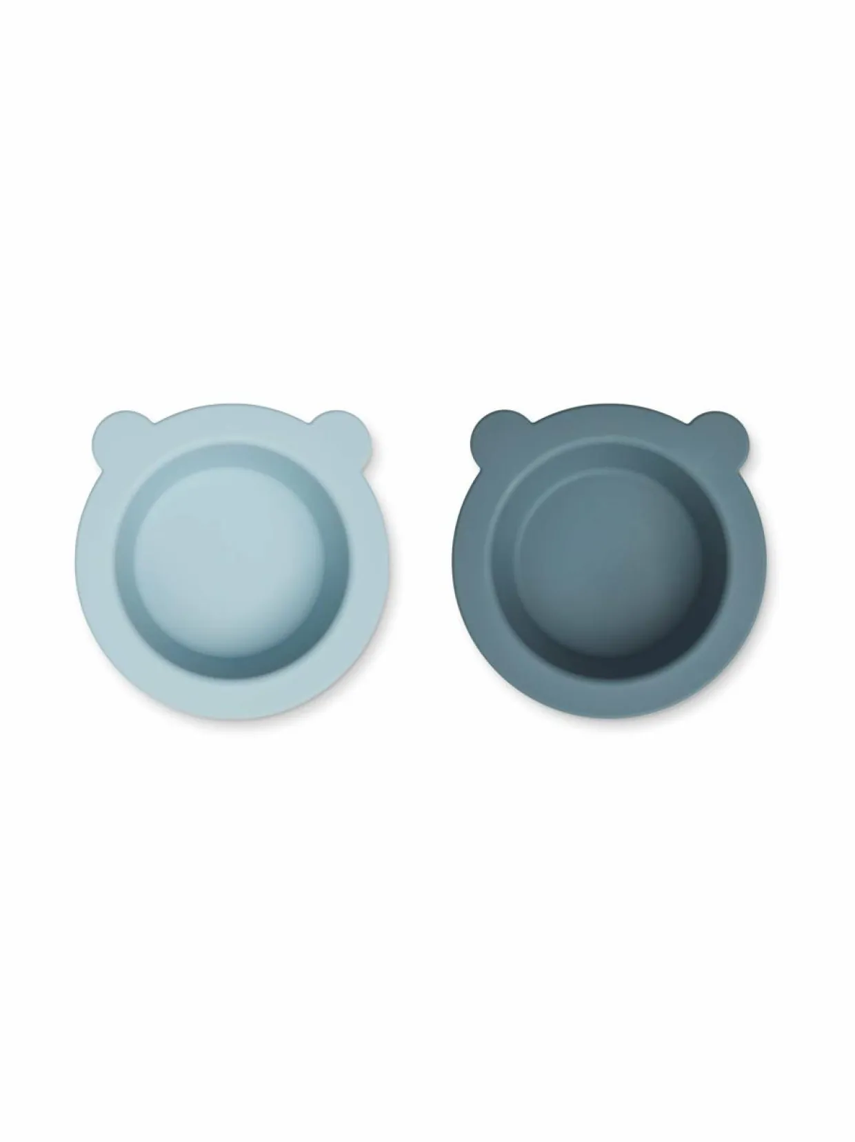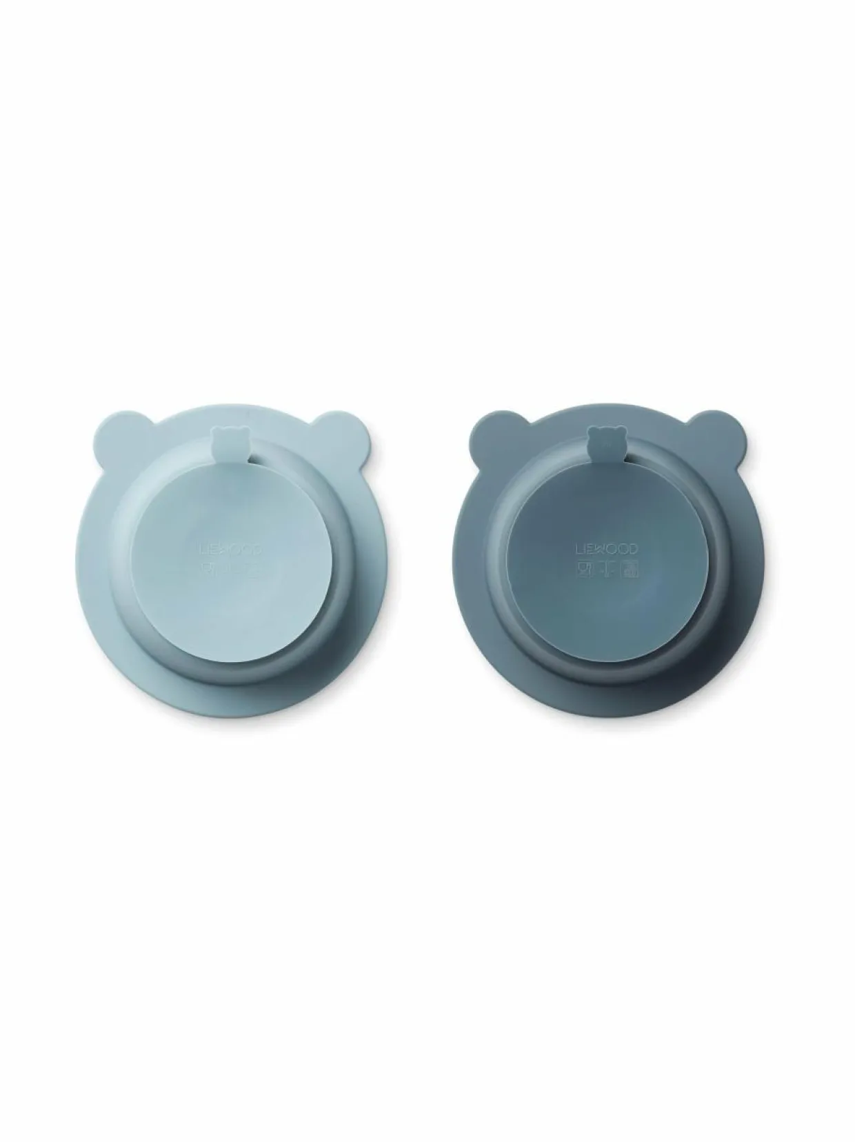 Liewood Peony -kulhopakkaus sisältää kaksi erisävyistä syvää lautasta. Kulhon pohjassa on imukuppi, jonka avulla astia pysyy kiinni pöydässä. Silikoniset kulhot ovat kestäviä, pehmeitä ja kevyitä. Mitat: Halkaisija 16 cm ja korkeus 5,3 cm. Tilavuus 500 ml.
