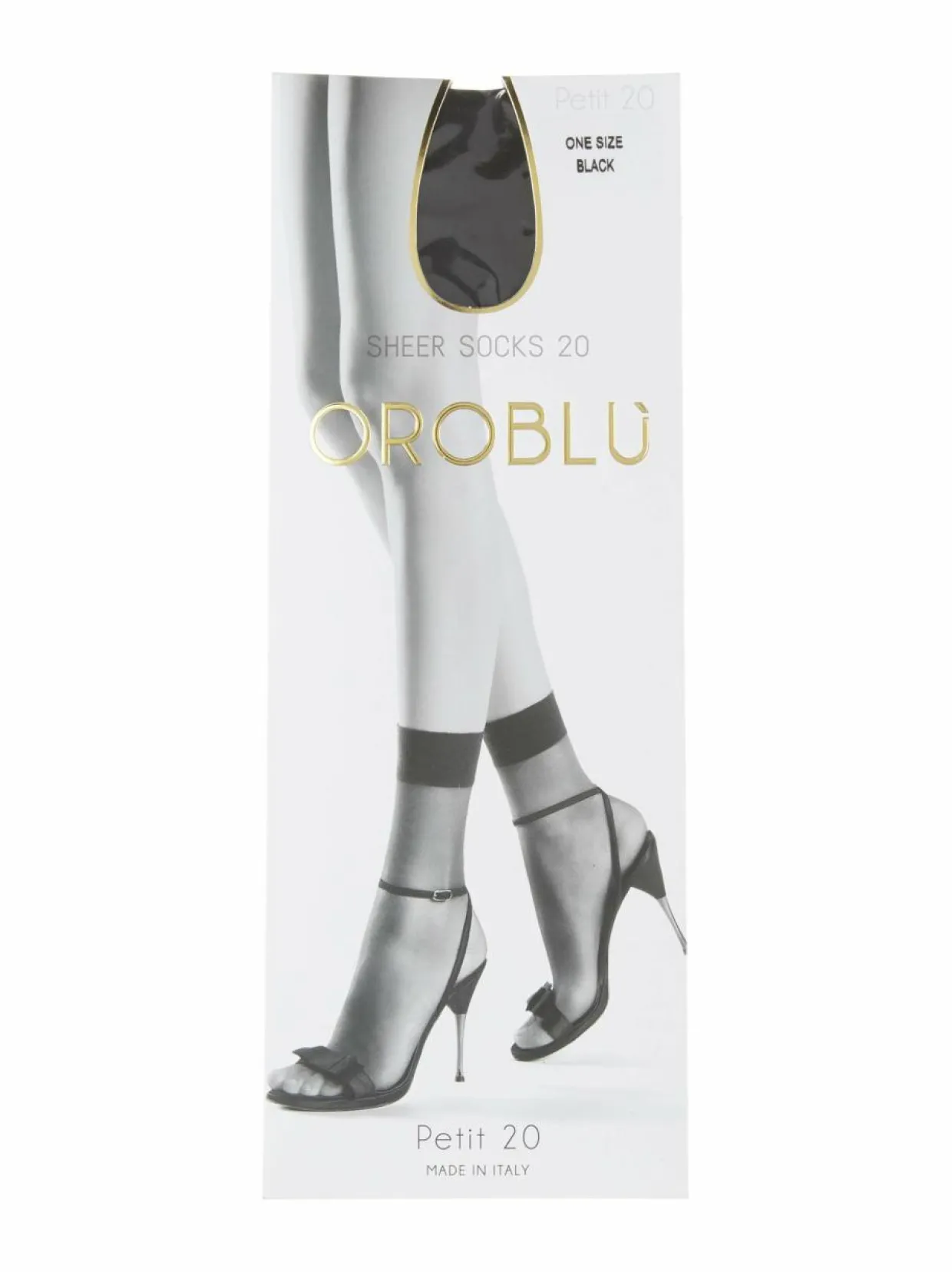 Ohuissa 20 denierin Oroblu Petit-sukissa on miellyttävän pehmeä ja leveä resori sekä vahvistettu kärkiosa.