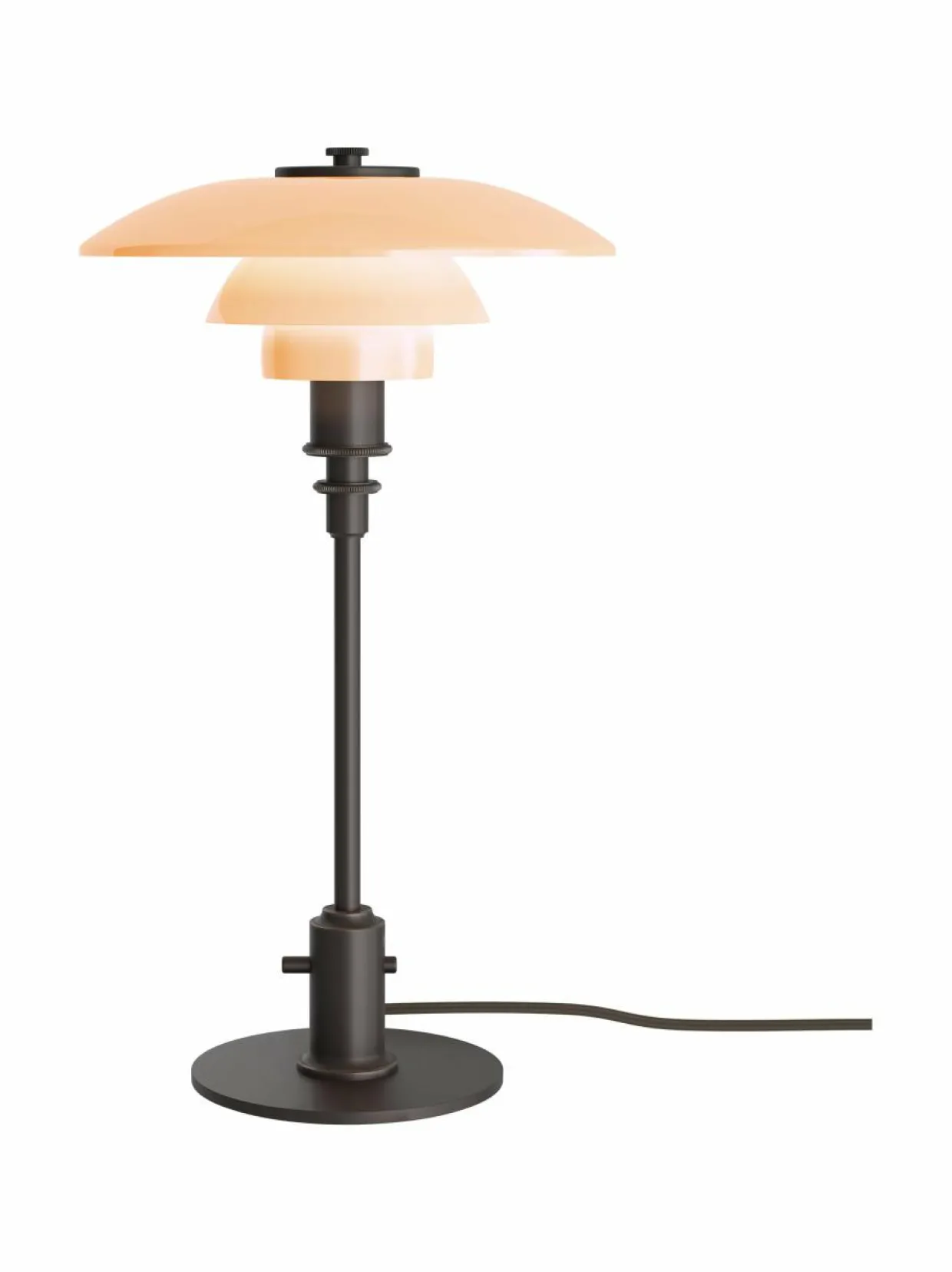 Poul Henningsenin heijastavaan kolmivarjostinjärjestelmään perustuva pieni PH 2/1 -pöytävalaisin saa aikaan pehmeän, alaspäin suuntautuvan valon. Nelikerroksiset suupuhalletut opaalilasivarjostimet ovat päältä kiiltäviä, ja yhdessä hiekkapuhalletun opaalinvalkoisen ja himmeän alapinnan kanssa ne saavat aikaan pehmeän ja runollisen valon. Kaikki lasivarjostimet on valmistettu käsin ja suupuhallettu yksittäin. Kiillotettu messinkipatina voi vaihdella. Huomaa, että messinki on käsitelty eikä pinta muutu ajan myötä.