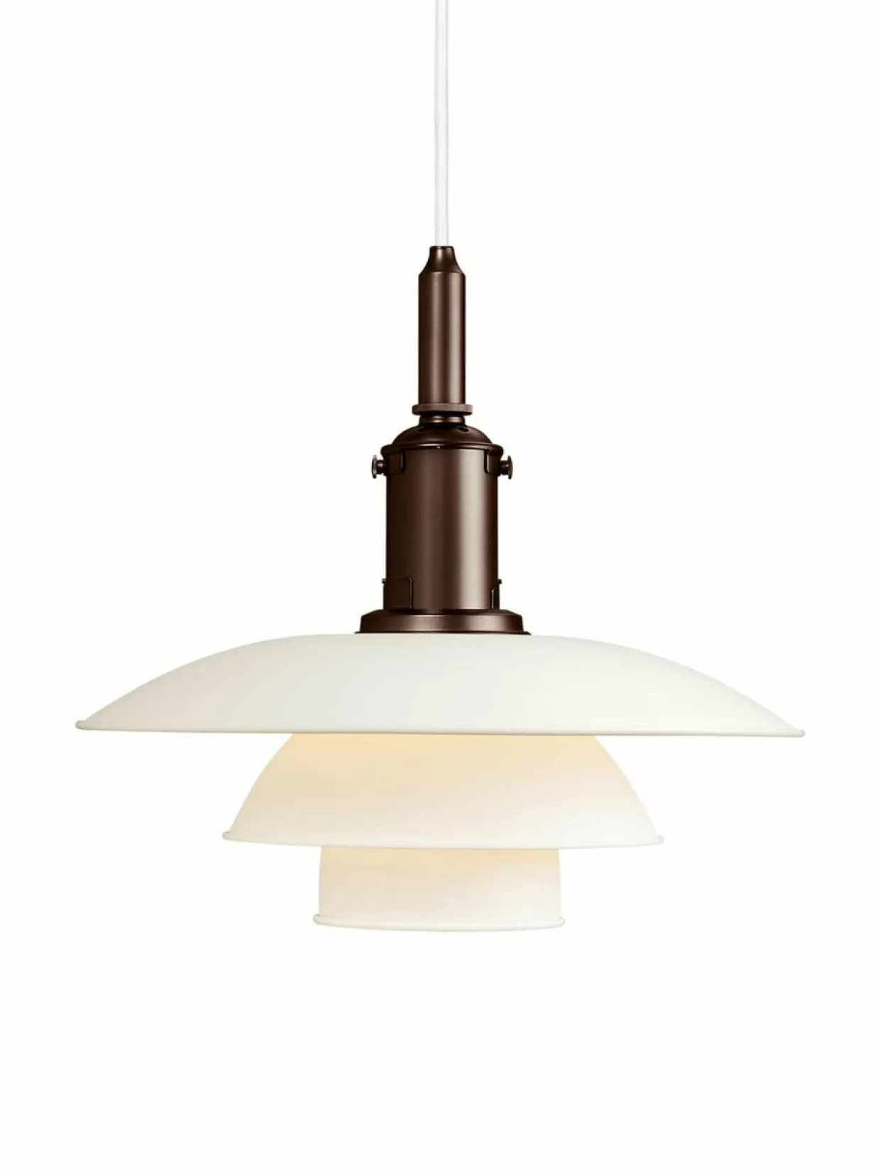 Poul Henningsenin vuonna 1929 suunnittelema PH 3½-3 -riippuvalaisin on design-klassikko, joka sulautuu ajattoman muotoilunsa ansiosta monenlaiseen ympäristöön. Valonlähde E27, max 100 W. Mitat ovat 330 x 307 mm.