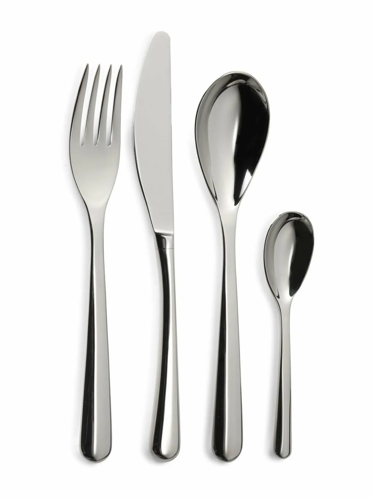 Piano-aterimien pyöreät muodot miellyttävät silmää ja tuntuvat mukavilta kädessä. Lahjapakkaus sisältää kuusi ruokahaarukkaa, kuusi ruokaveistä, kuusi ruokalusikkaa ja kuusi kahvilusikkaa. Kiillotetusta ruostumattomasta teräksestä valmistetut tuotteet kestävät konepesun.