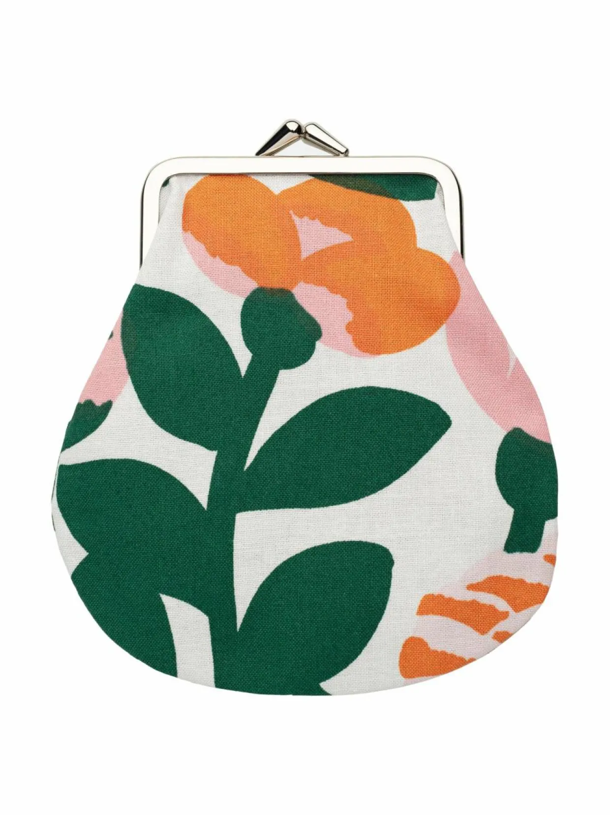 Marimekon Pieni Green Green -kukkaro on valmistettu puuvillasta ja siinä on metallinen kehys, joka on helppo napsauttaa auki ja kiinni. Kukkarossa on Pieni Green Green -kuosi. Materiaali on painettu Helsingissä. Kukkaro on monikäyttöinen ja siinä voi säilyttää esimerkiksi kortteja ja paljon muuta. Mitat ovat 13 x 12 cm.