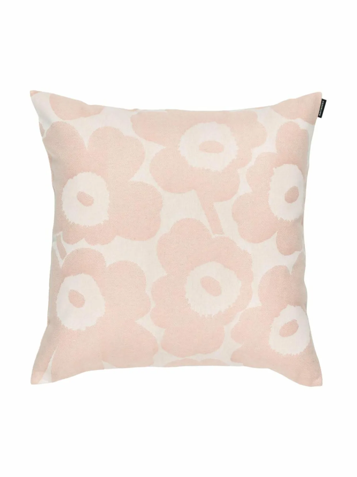 Marimekon Pieni Unikko -tyynynpäällinen on valmistettu Jacquard-kudottu valmistettu puuvillapellavasta. Sitä koristaa jakardikuvioitu Pieni Unikko -kuosi. Päällisessä on piilovetoketju yhdellä sivulla.