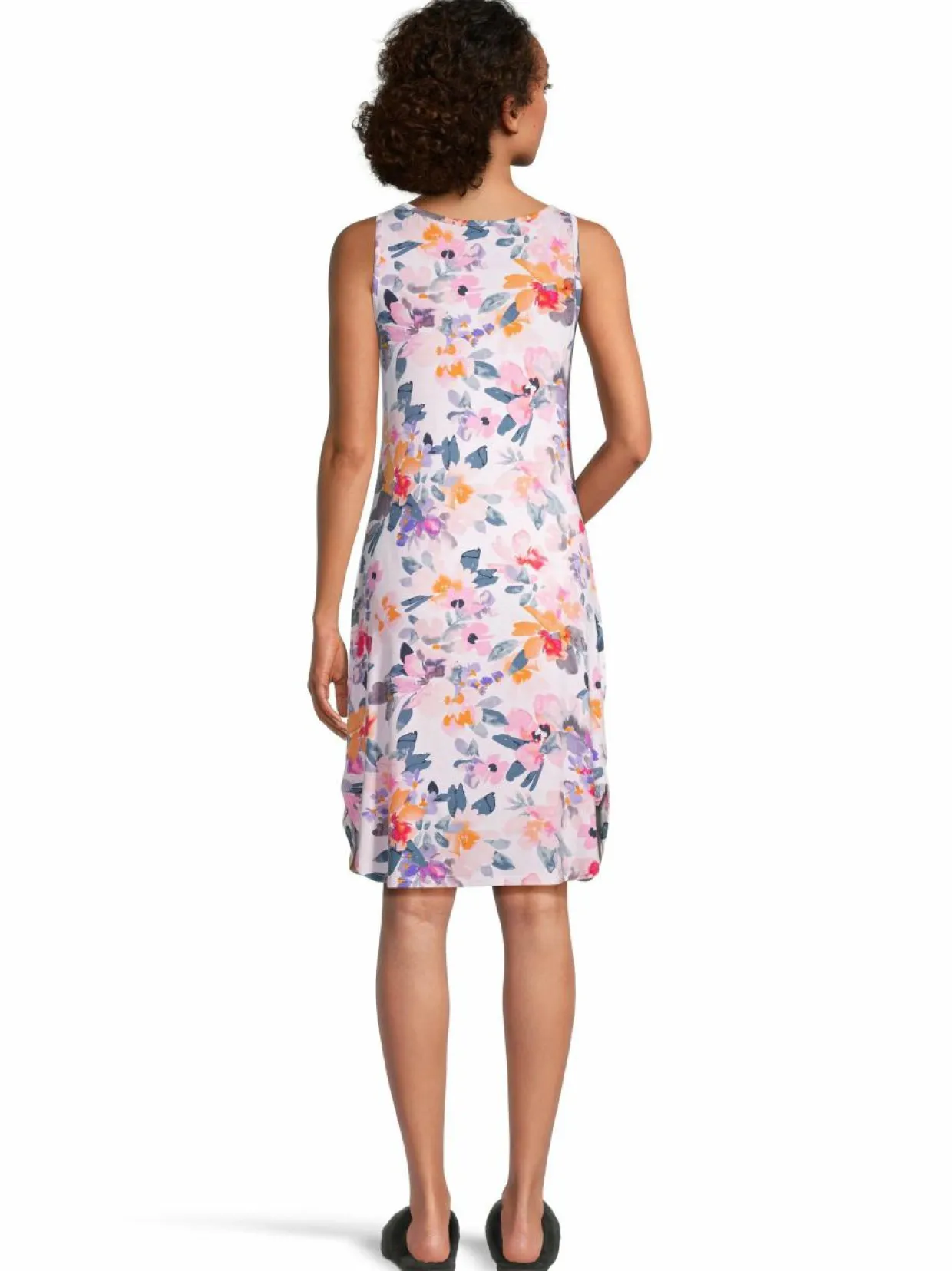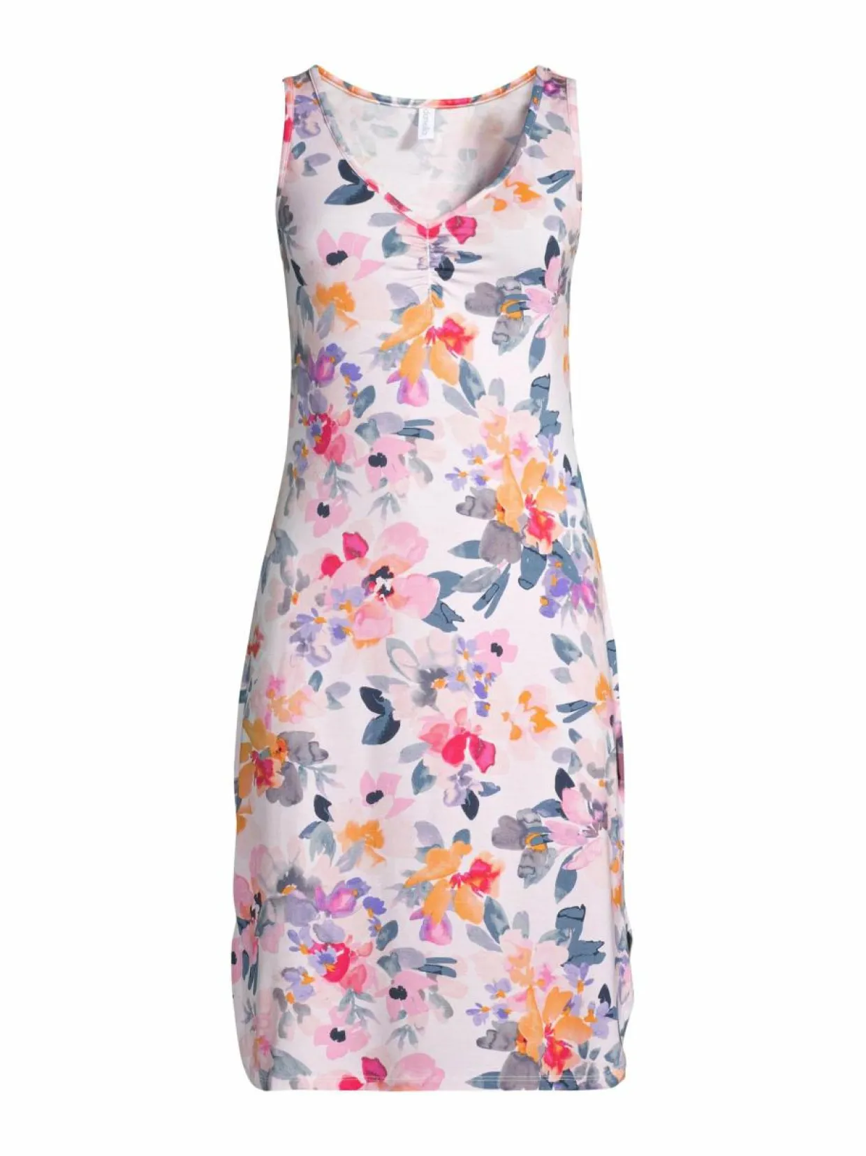 Damellan hihaton yöpaita on valmistettu pehmeästä ja hengittävästä modaalista, johon on lisätty myös elastaania tuomaan joustoa. Yöpaidassa on kaunis V-pääntie ja rypytyksiä miehustassa. Sen sivuhelmassa on halkiot. Vaatteen pituus on noin 98 cm.