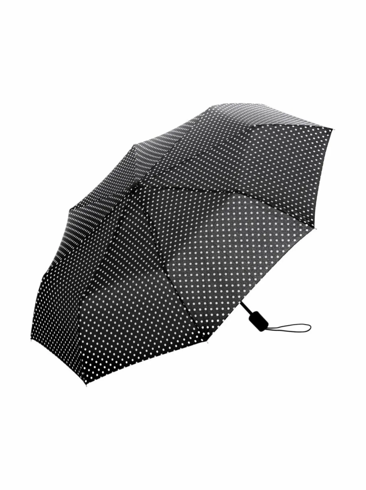 Tuotenumero131280180 MateriaaliPolyesteriä KokotiedotHalkaisija 100 cm, pituus taiteltuna 24 cm, paino 320 g. ValmistusmaaKiina VäriMUSTA/VALKOINEN/PILKULLINEN Kokoø 100 cm AvainsanatL’asessor, sateenvarja, taitettava sateenvarjo,