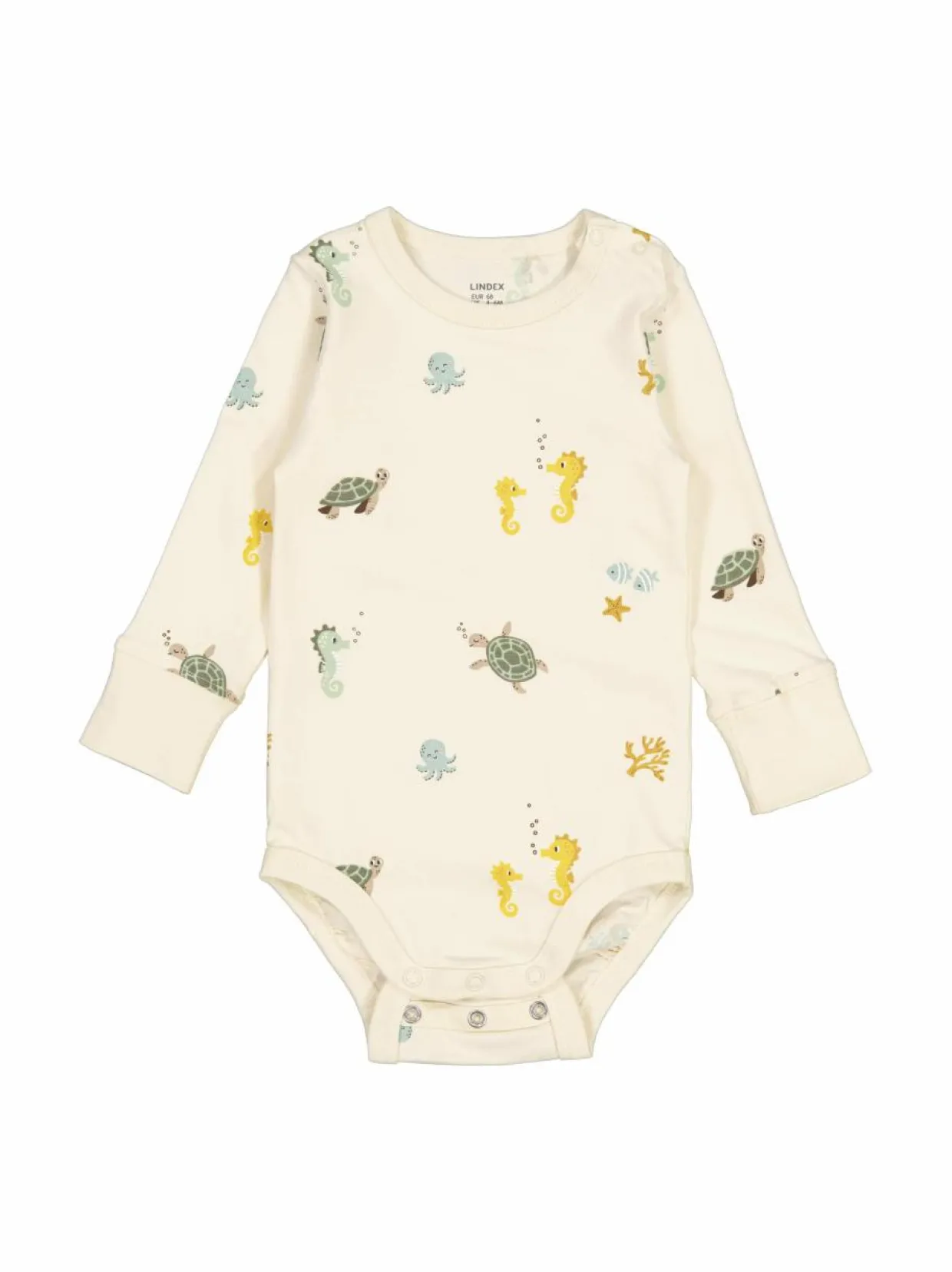 Lindexin pitkähihainen body on pehmeää puuvillatrikoota, joka tuntuu miellyttävältä vauvan herkällä iholla. Kätevä Extended size -ratkaisu mahdollistaa bodyn käytön pidempään, kun vauva kasvaa. Hupaisat kuviot tuovat ilmettä, ja nepparikiinnitys helpottaa pukemista. Monikäyttöinen body sopii täydellisesti niin arjen vaatevalintoihin kuin kerrospukeutumiseen.