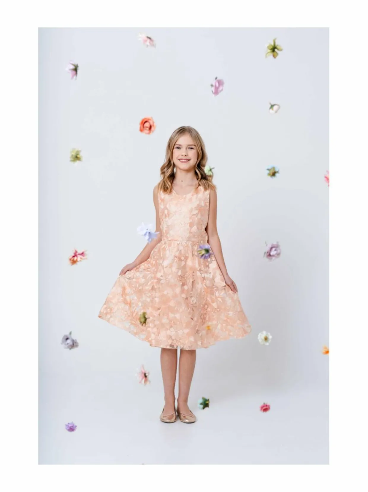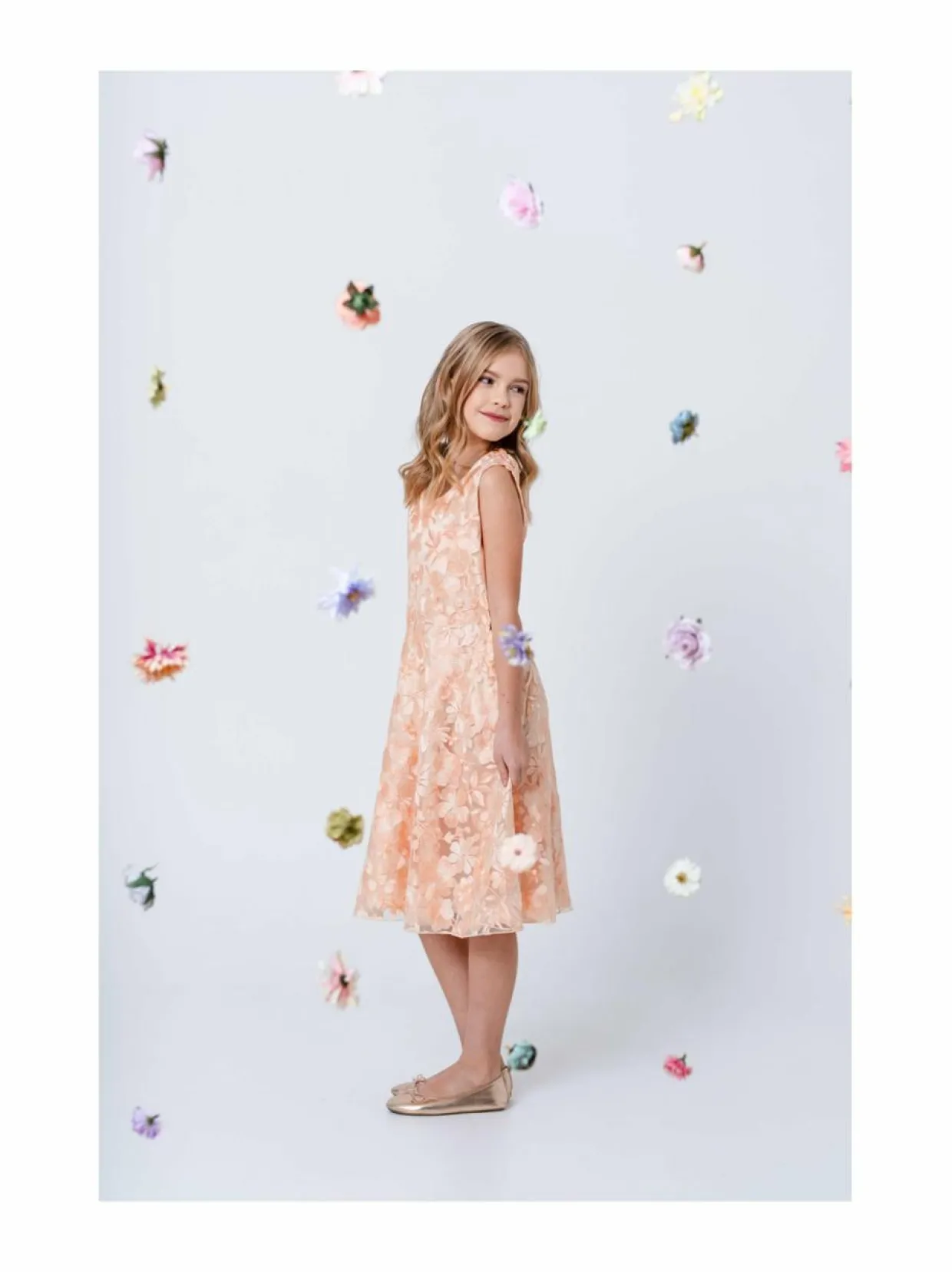 Mingnelin merkin elegantti lasten juhlamekko kukkabrodeerauksilla. Hihattoman pitsimekon takaosassa on vetoketjusulku. Suunniteltu A-linjaisella helmalla ja normaalilla istuvuudella.