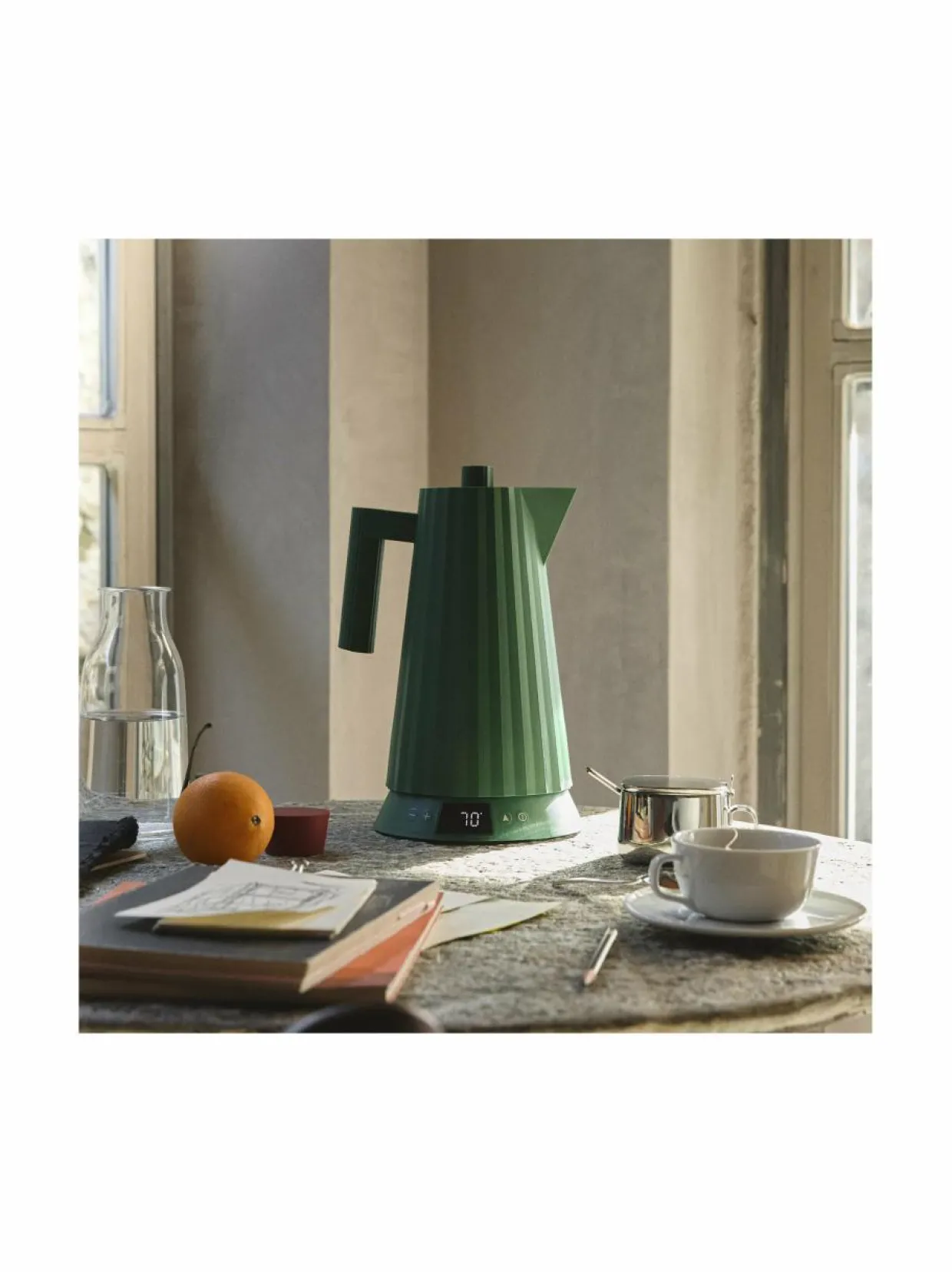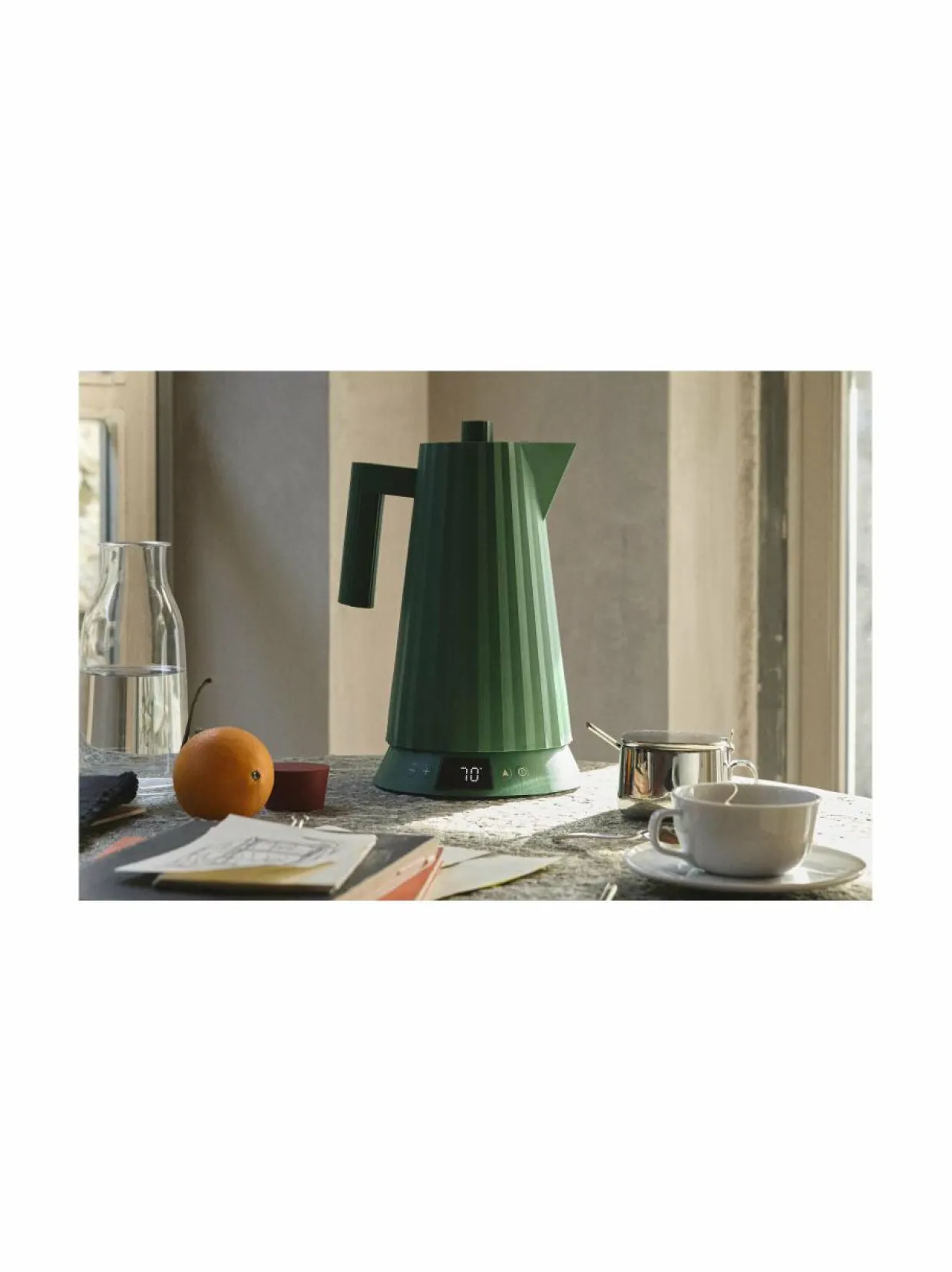 Michele De Lucchin suunnittelemassa, termoplastisesta hartsista valmistetussa Plissé-vedenkeittimessä yhdistyvät toiminnalliset näkökohdat kiehtovaan muotoiluun, joka paljastaa luojan arkkitehtonisen taustan sekä hänen intohimonsa käsityöhön ja kuvanveistoon. Tämä vedenkeitin on muotisuunnittelijan muotoilema kaunis esine, jonka voi jättää huoletta näkyvälle paikalle keittiössä. Vedenkeittimessä on kaunis sävy. Lämpötilan voi säätää itse. Kiehumisen jälkeen kuuluu merkkiääni, joka osoittaa, että oikea lämpötila on saavutettu. Keittimessä on kuivakiehumissuoja, eristetty pinta ja irrotettava pohja.