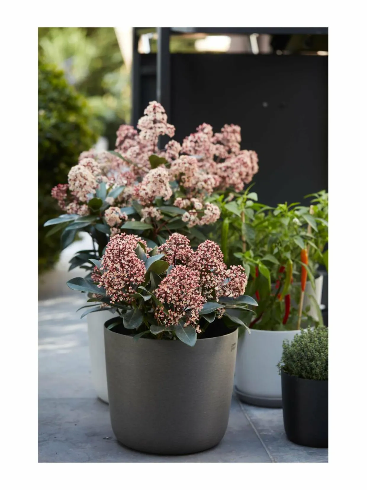 Istutusruukku sopii sekä ulko- että sisäkäyttöön, koska on UV- ja pakkasenkestävä. Ruukun pohjassa on tyhjennysreikä irrotettavalla tulpalla. Materiaalien yhdistelmä antaa ruukun pinnalle kauniin luonnollisen mattapinnan. Tämän tuotteen valmistuksessa on käytetty kierrätysmuovia, joka vähentää jätteiden määrää.