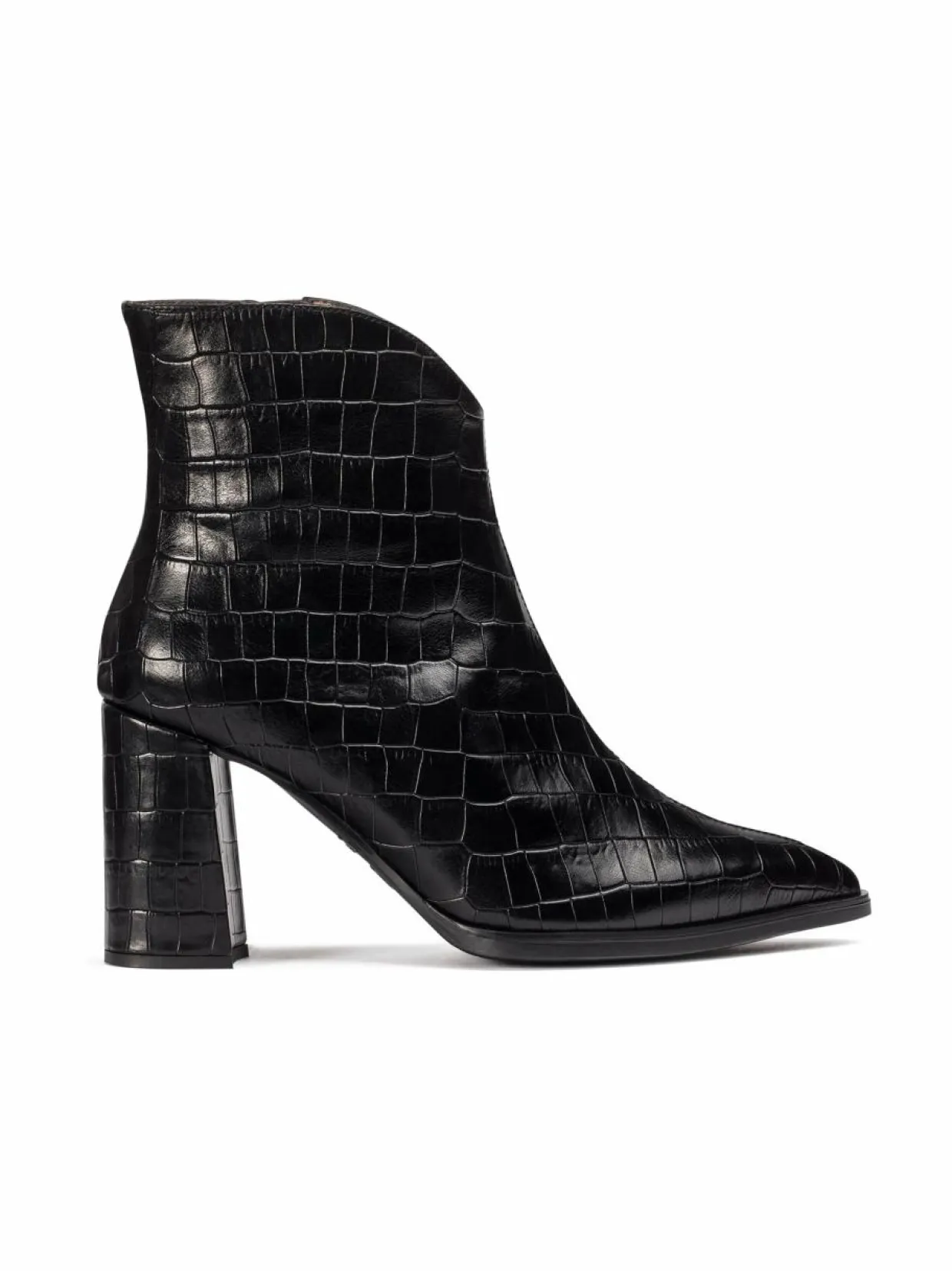 Wonders Pointy Croco -nilkkurit yhdistävät eleganssin ja modernin muotoilun. Krokotiilin nahkaa muistuttava pinta luo ajatonta ilmettä, ja terävä kärki sekä blokkikorko antavat niille viimeistellyn ulkonäön. Nämä nahkanilkkurit tarjoavat sekä mukavuutta että kestävyyttä. Kevyt TPU-pohja lisää käyttömukavuutta ja varmistaa hyvän pidon. Pointy Croco -nilkkurit sopivat täydellisesti niin arkeen kuin juhlaan.