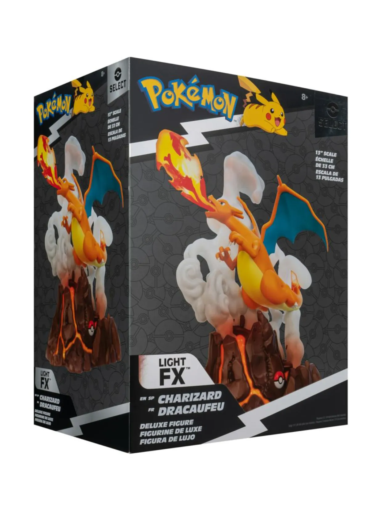 Sytytä intohimosi taisteluun Charizard kanssa. Suuressa keräilijöille suunnatussa patsaassa on useita valoja ja se esittää Charizardia kohoamassa sulan laavan läpi. Aktivoi sen hengitys- ja pyrstöliekkien sekä laava sisällä olevat valot painamalla patsaan jalustassa olevaa Poképallo-painiketta, jolloin patsas herää henkiin ja esittelee Charizardin ikonisia kykyjä. Suosittu tulityypin Pokémon on todella yksityiskohtainen keräilyesine, ja se näyttää siltä kuin se olisi lentänyt suoraan menestyneestä Pokémon-animaatiosarjasta. Lisää Charizard-keräilypatsas Pokémon-kokoelmaasi ja juhlista mestaripolttajaa.