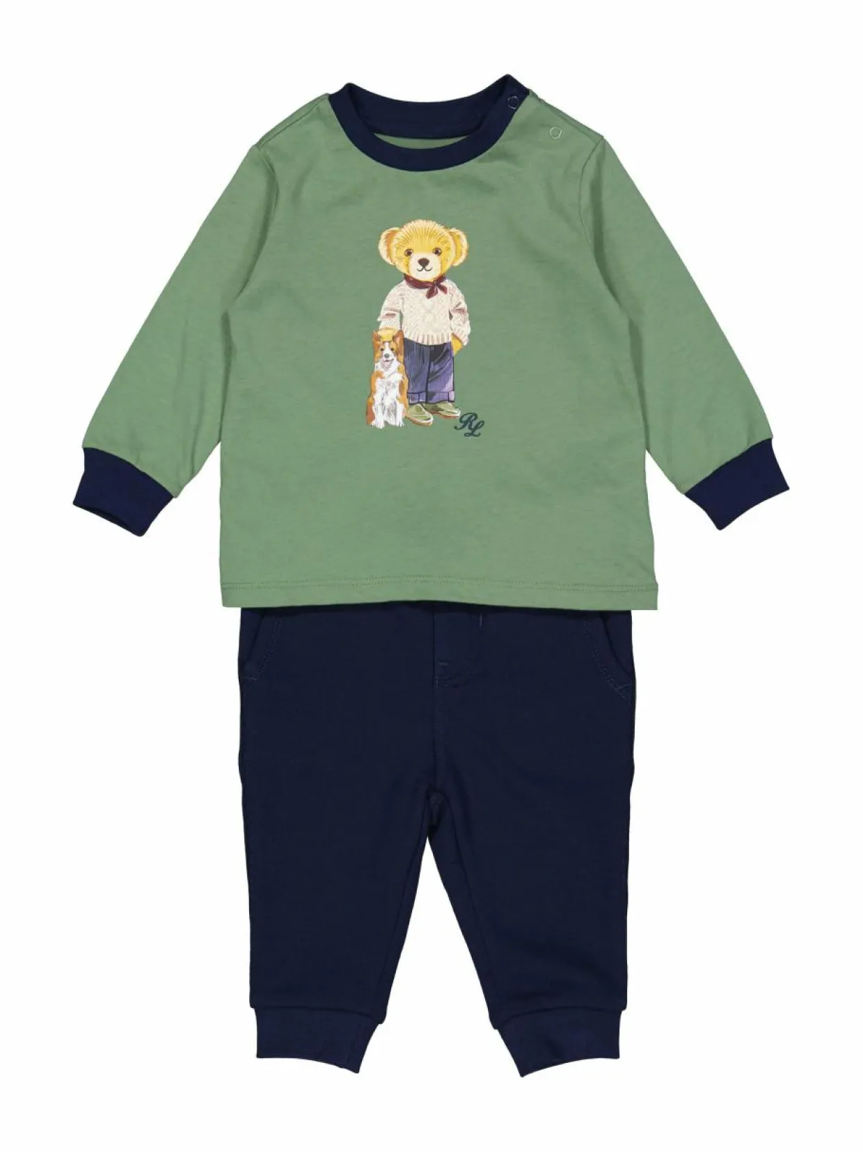 Polo Ralph Laurenin lasten collegesetti koostuu pehmeästä collegepaidasta sekä täyspitkistä housuista. Setissä on mukava liikkua ja leikkiä koko päivän. Nepparit helpottavat paidan pukemista ja riisumista. Resorit pääntiellä, helmassa sekä hihansuissa. Myös housujen lahkeensuissa on ribbiresorit. Housujen vyötärölinja on joustava. Paidan etuosaa somistaa ikoninen Polo-nallekarhu.