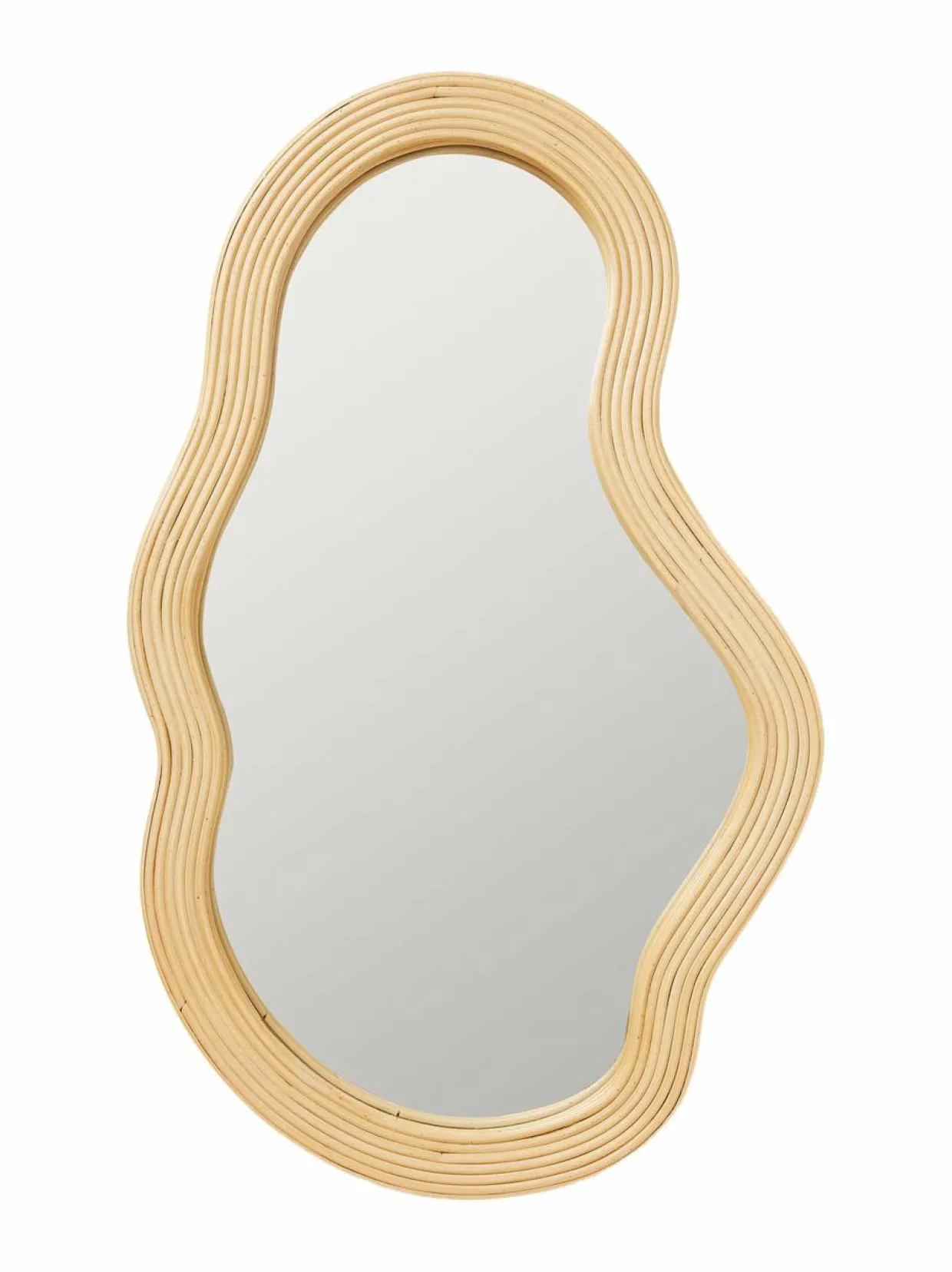 Ferm LIVINGin keskikokoinen peili kuuluu Pond-sarjaan, jonka design tuo tilaan kevyitä ja virtaavia muotoja. Peilin kehys on valmistettu huolellisesti käsintehdystä rottingista, joka luo luonnollista lämpöä ja viehättävää ilmettä.