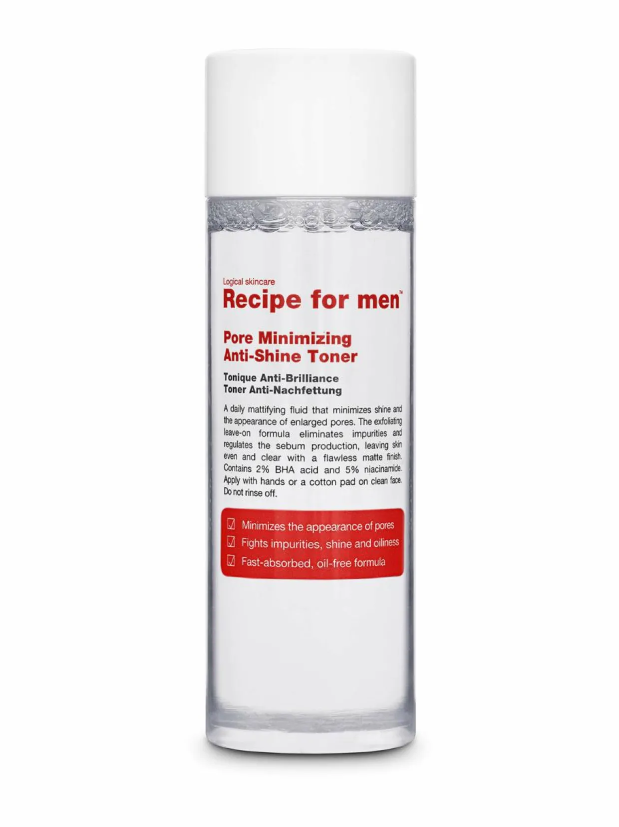 Recipe for Men kuoriva kasvovesi on tehokas laajentuneita huokosia, epäpuhtauksia ja mustapäitä vastaan. Minimoi ihon rasvaisuutta ja antaa mattapintaisen lopputuloksen. Rauhoittaa ihoa ja tasoittaa ihon sävyä. Sisältää 2 % BHA-happoa ja 5 % niasiiniamidia.
