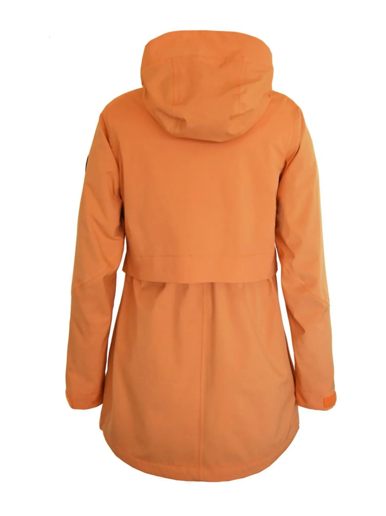 Luoto Poukama – Naisten ulkoiluparka. Korkea kaulus pitää kaulan lämpimänä navakammallakin tuulella. Pikkutavarat pysyvät matkassa mukana vetoketjullisissa taskuissa. Takin istuvuutta voi säätää mieleisekseen takin hupusta, vyötäröltä ja hihansuista. Päällikankaassa on ympäristöystävällinen PFC-vapaa vedenhylkivyyskäsittely.