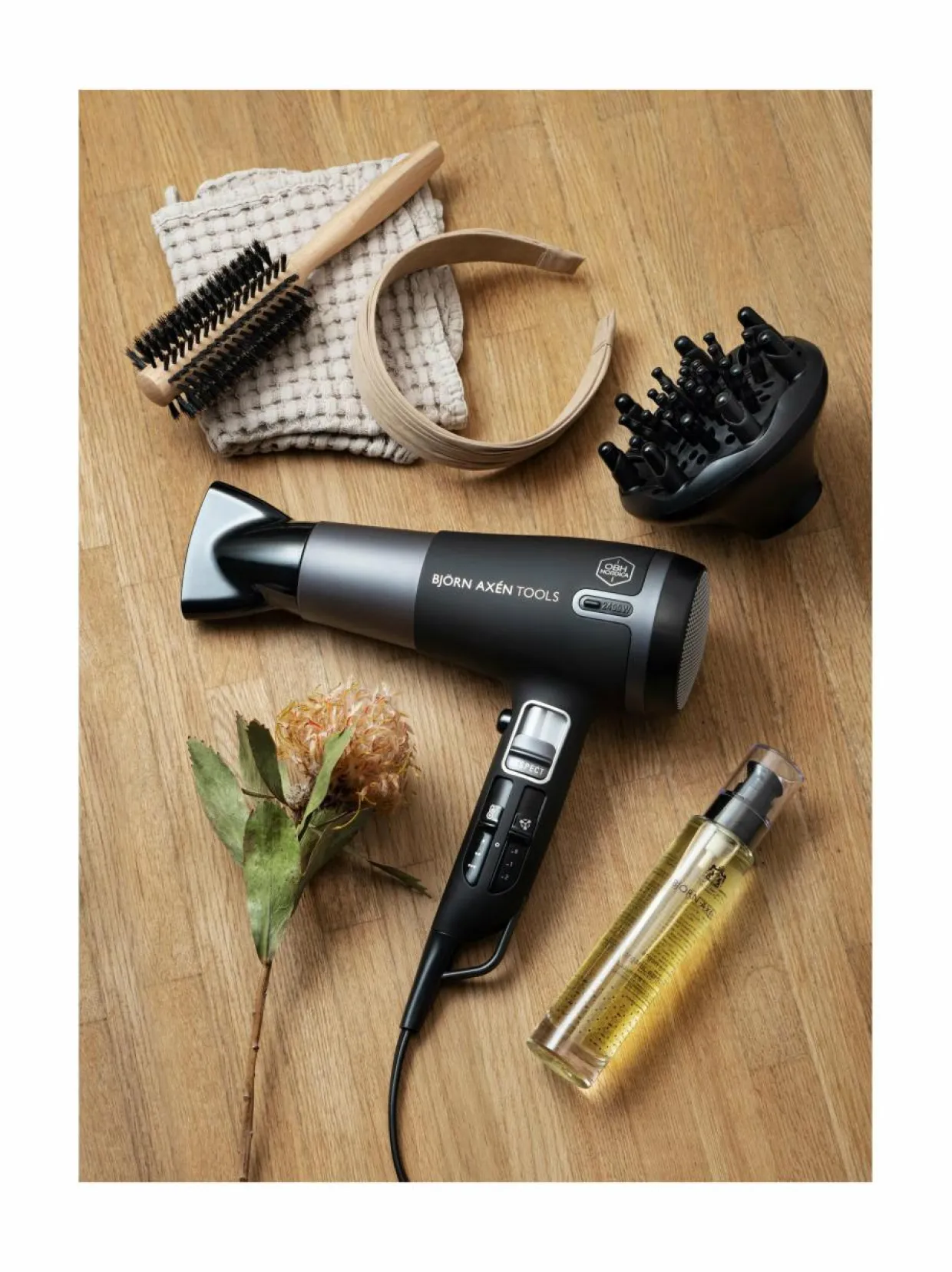 Björn Axén Tools Premium Care on poikkeuksellisen hyvä hiustenkuivain kaikentyyppisille hiuksille. Erityisen hyvin se sopii latvoista kuiville tai muuten rasittuneille hiuksille – sekä sinulle, joka haluat säilyttää hiuksesi terveinä ja kiiltävinä.