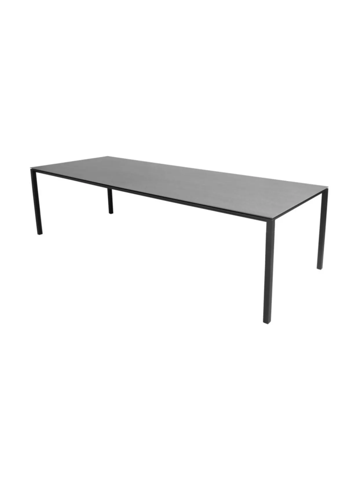 Cane-linen upea Pure-ruokapöytä on muokattavissa oman maun mukaan; runko- ja kansiväri ovat valittavissa monipuolisesta valikoimasta. Pöydän kestävä runko on alumiinia. Naarmuntumattoman ja helppohoitoisen pöydän pinnan voi pyyhkiä puhtaaksi kostealla liinalla. Lisäksi pöytälevy kestää UV-säteilyä ja erilaisia säätiloja.
