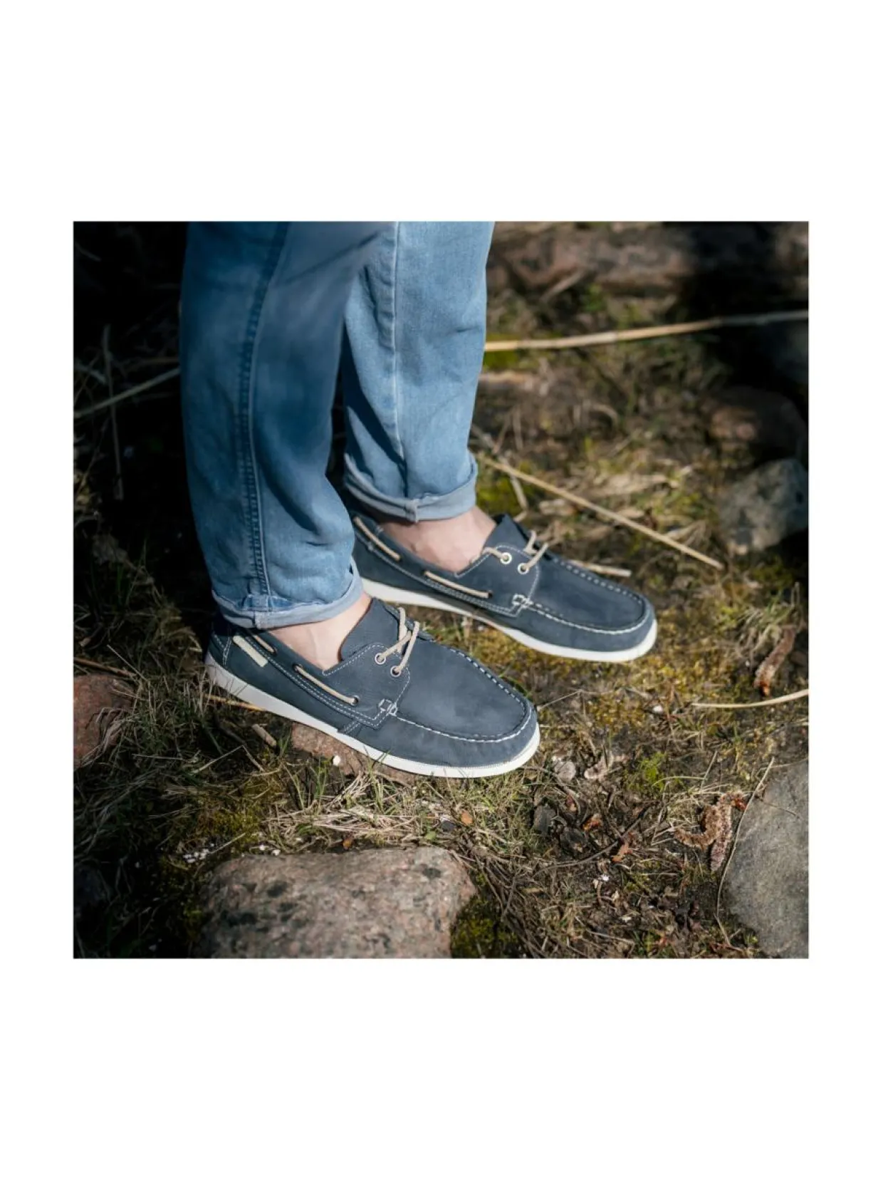 Valmistettu PortugalissaMateriaaliNahka VäriBLUE NUBUCK Avainsanatboat shoes, deck shoes, purkkarit, purjehduskengät, kansikengät, upcycled, ympäristöystävällinen, sustainable