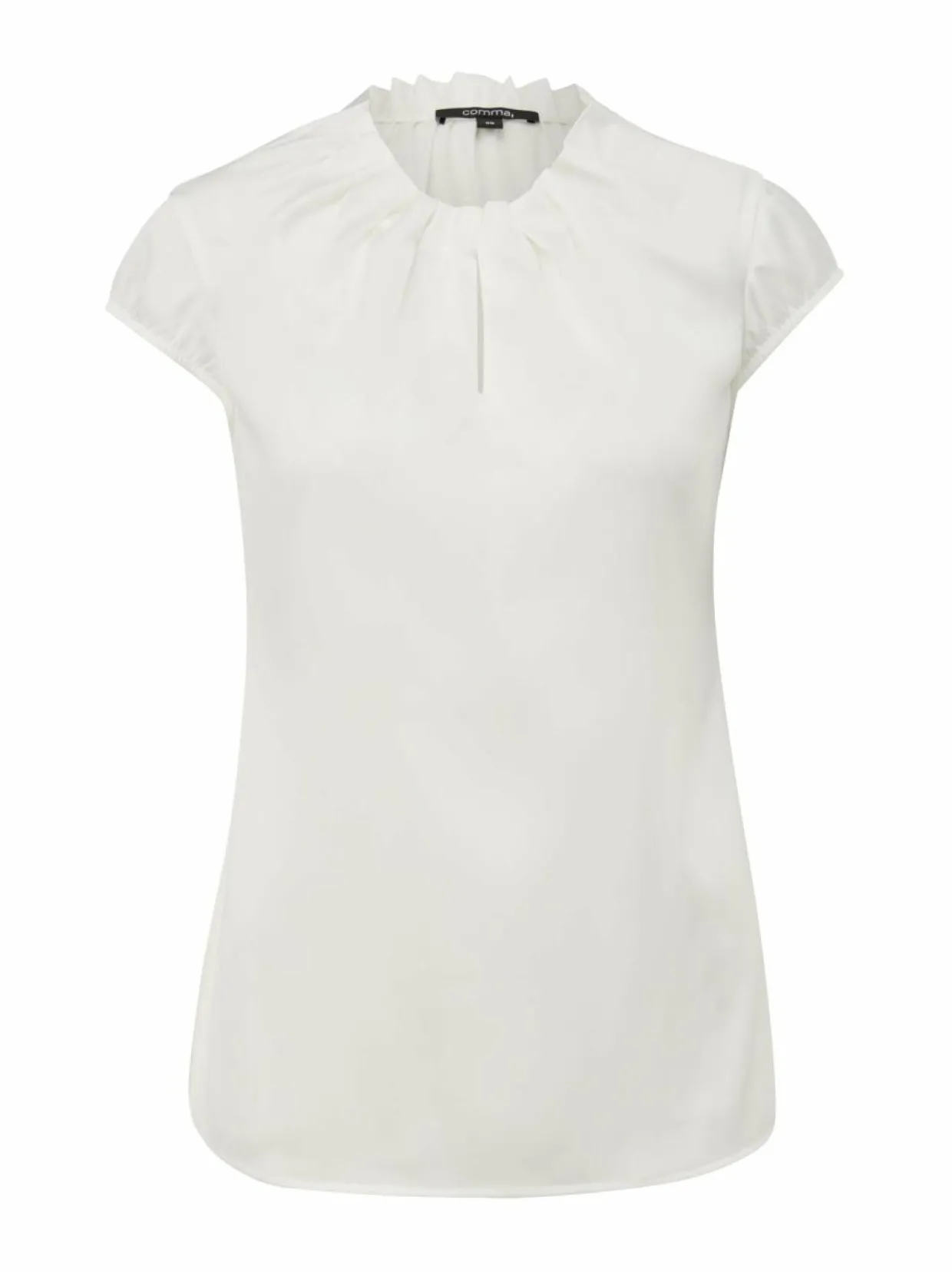 Comma-merkin pusero on elegantti ja naisellinen lisä vaatekokoelmaan. Sen hienostuneet poimutukset pääntiellä lisäävät asuun tekstuuria ja mielenkiintoa, samalla kun puhdaslinjainen leikkaus pitää ilmeen ajattomana. Tämä monipuolinen pusero sopii saumattomasti niin virallisiin tilaisuuksiin kuin rennompiinkin hetkiin, tarjoten loputtomasti yhdistelymahdollisuuksia niin housujen kuin hameidenkin kanssa.