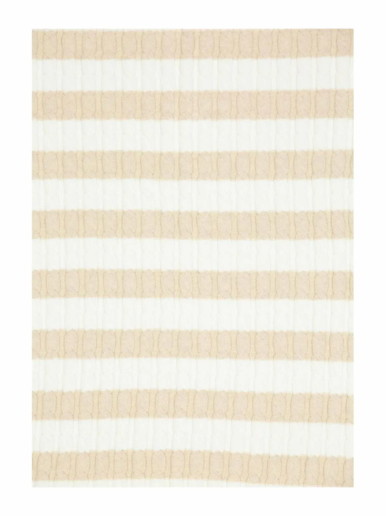 Tämä pienokaisille tarkoitettu palmikkoneuleviltti on valmistettu 100 % luomupuuvillasta. Viltissä on ajaton raitakuosi.