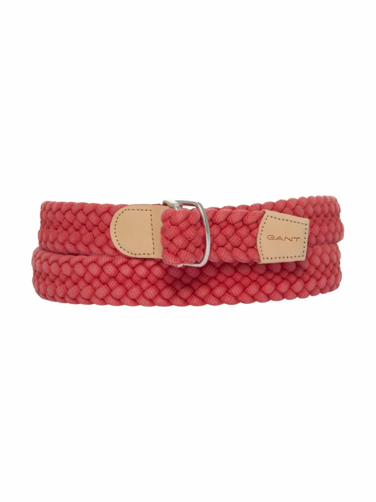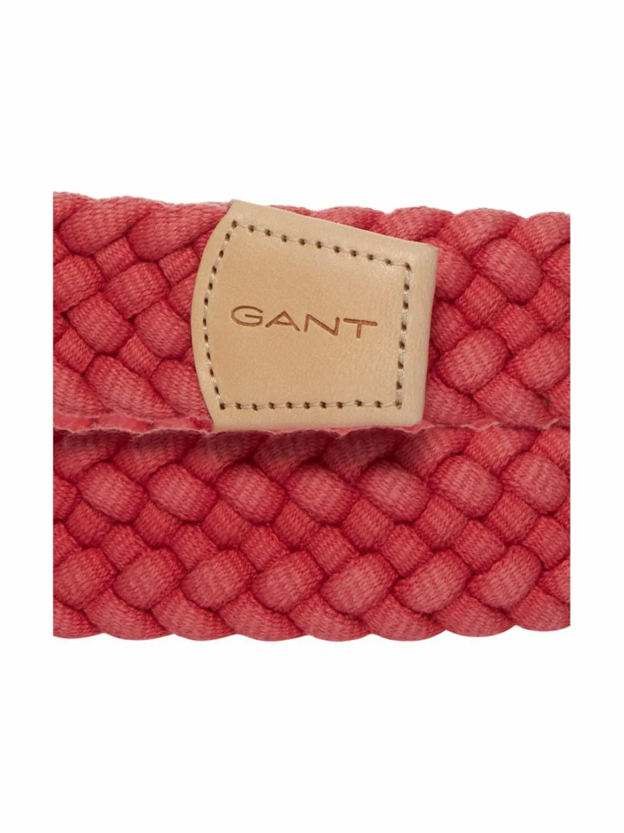 Gantin ilmeeltään auringon haalistamassa ja kuluneessa punosvyössä on nahkasomisteet, metallinen D-rengassolki sekä syväpainettu Gant-logo. Vyö on valmistettu Italiassa puuvillasta.
