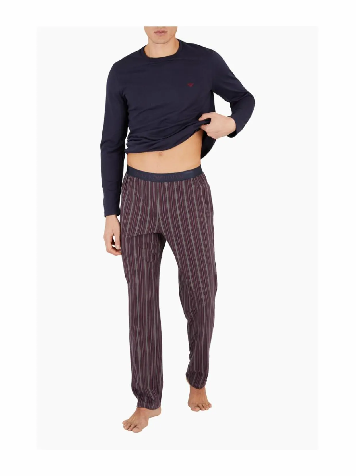 Emporio Armanin pitkä pyjama yhdistää tyylin ja mukavuuden täydellisesti. Tämä kaksiosainen pyjama on valmistettu pehmeästä ja hengittävästä puuvillasta, joka tuntuu miellyttävältä ihoa vasten ja sopii käytettäväksi ympäri vuoden.