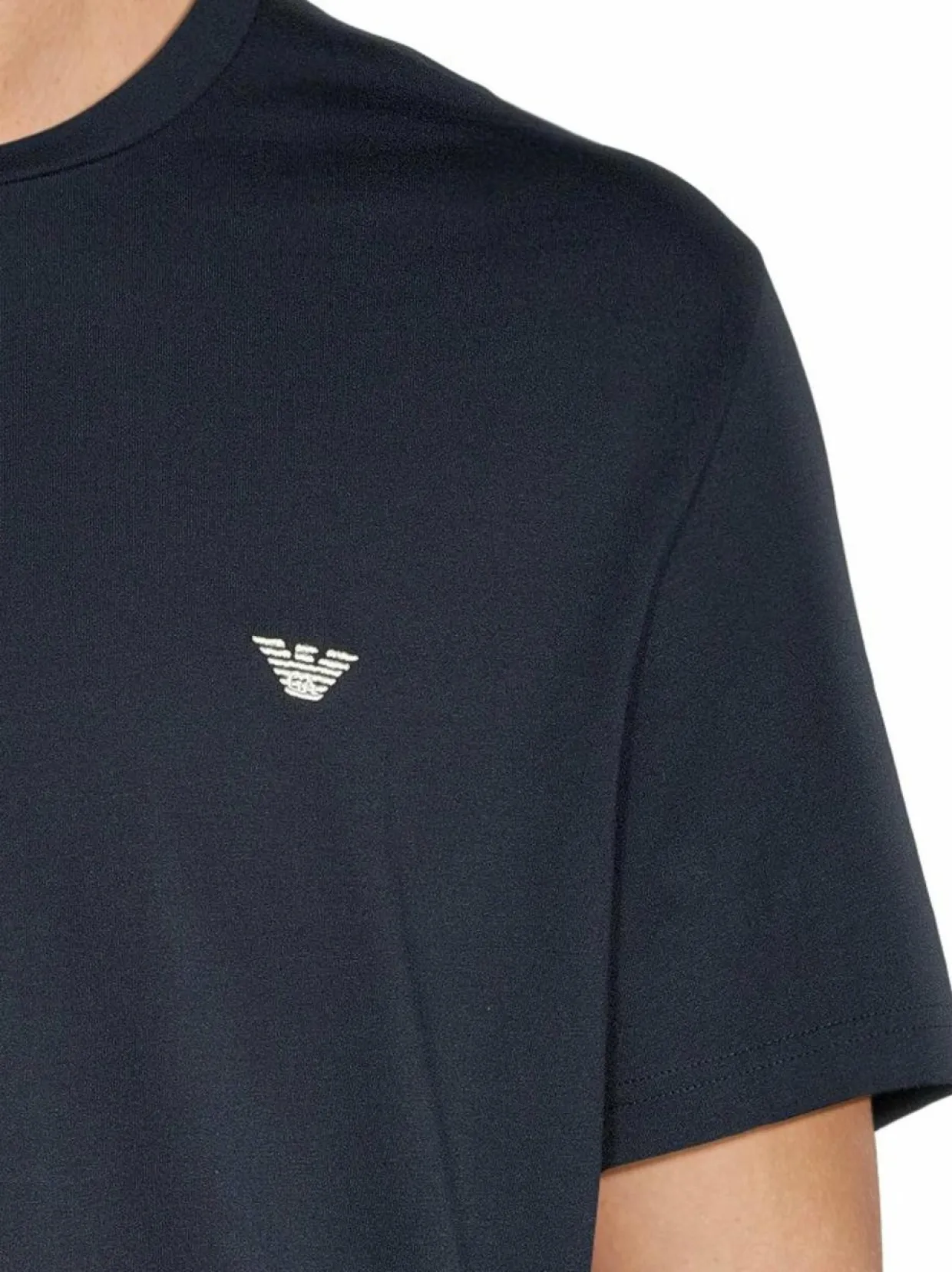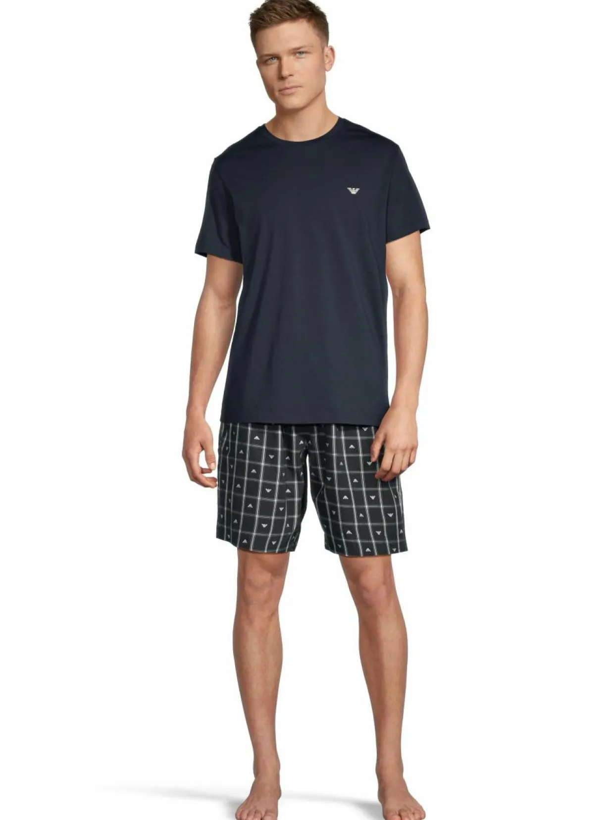 Emporio Armanin pyjama on valmistettu pehmeästä puuvillasta ja sitä on mukava käyttää. Pyjamaan kuuluvat lyhythihainen yläosa sekä shortsit, joissa on logokuviointi. Myös paidan rinnassa on brodeerattu logo. Tämä pyjama on ihanteellinen valinta rentoon iltaan kotona.