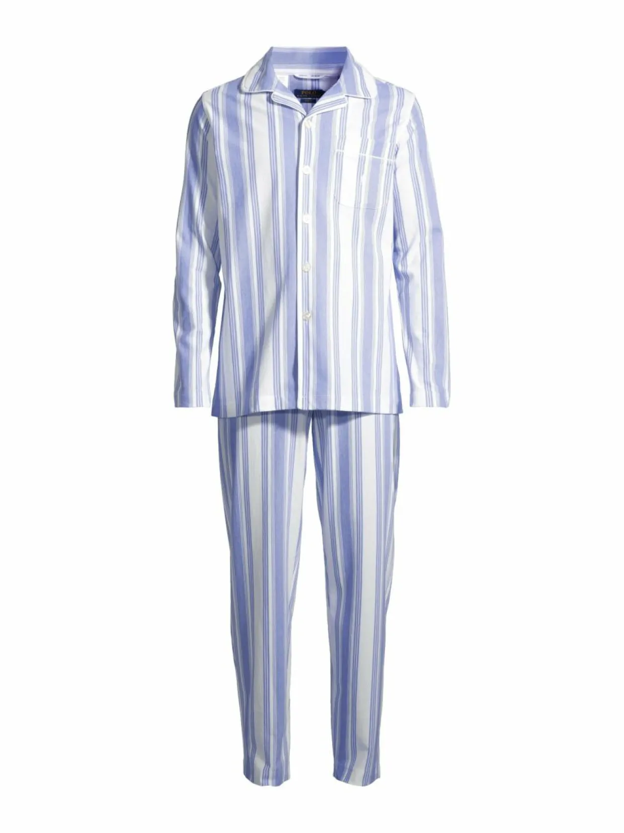 Ralph Laurenin pyjama on valmistettu sataprosenttisesta puuvillasta, joten se tuntuu miellyttävältä ihoa vasten. Settiin kuuluu napitettava pitkähihainen paita ja yhteensopivat housut, jotka molemmat on koristeltu ajattomalla raidallisella kuosilla.