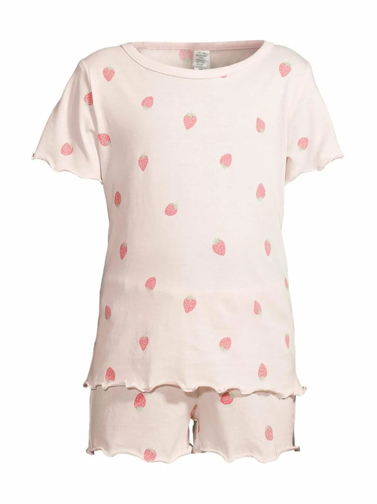 Mukava pyjama-asu, jossa on lyhythihainen yläosa ja yhteensopivat pyjamashortsit. Valmistettu pehmeästä puuvillajerseystä, joka tuntuu miellyttävältä ihoa vasten. Sarjan ilmeen kruunaa söpö kuviointi. Tämä pyjamasetti on täydellinen valinta rentoihin hetkiin ja hyviin uniin.