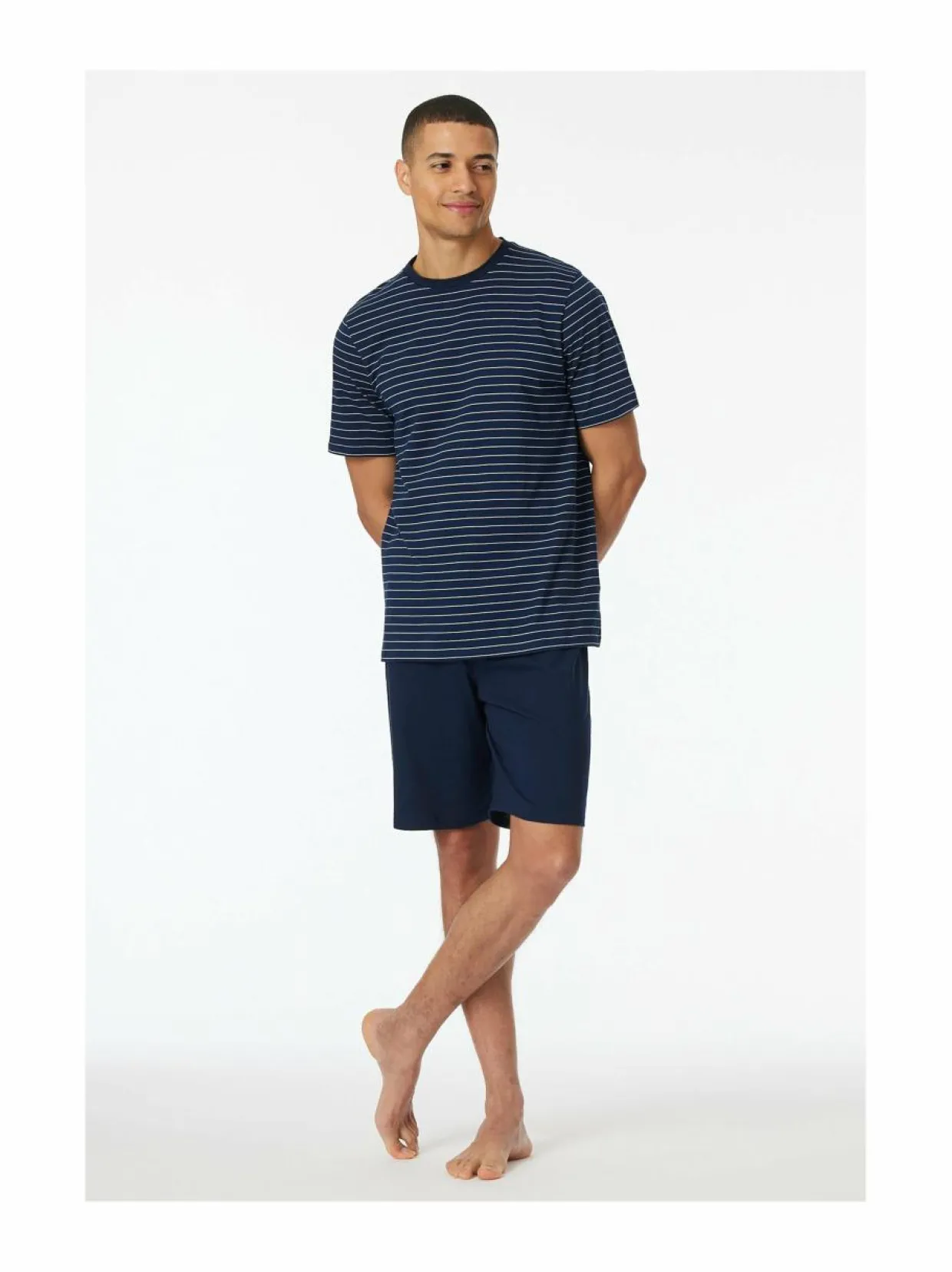 Schiesserin mukava pyjamasetti on valmistettu pehmeästä puuvillasta. Setissä on lyhythihainen paita ja shortsit. Paita on raidallinen ja shortsit ovat yksiväriset. Pyjamasetti on ihanteellinen rentoutumiseen ja mukavaan yöuneen. Setin materiaali on pehmeää ja hengittävää.