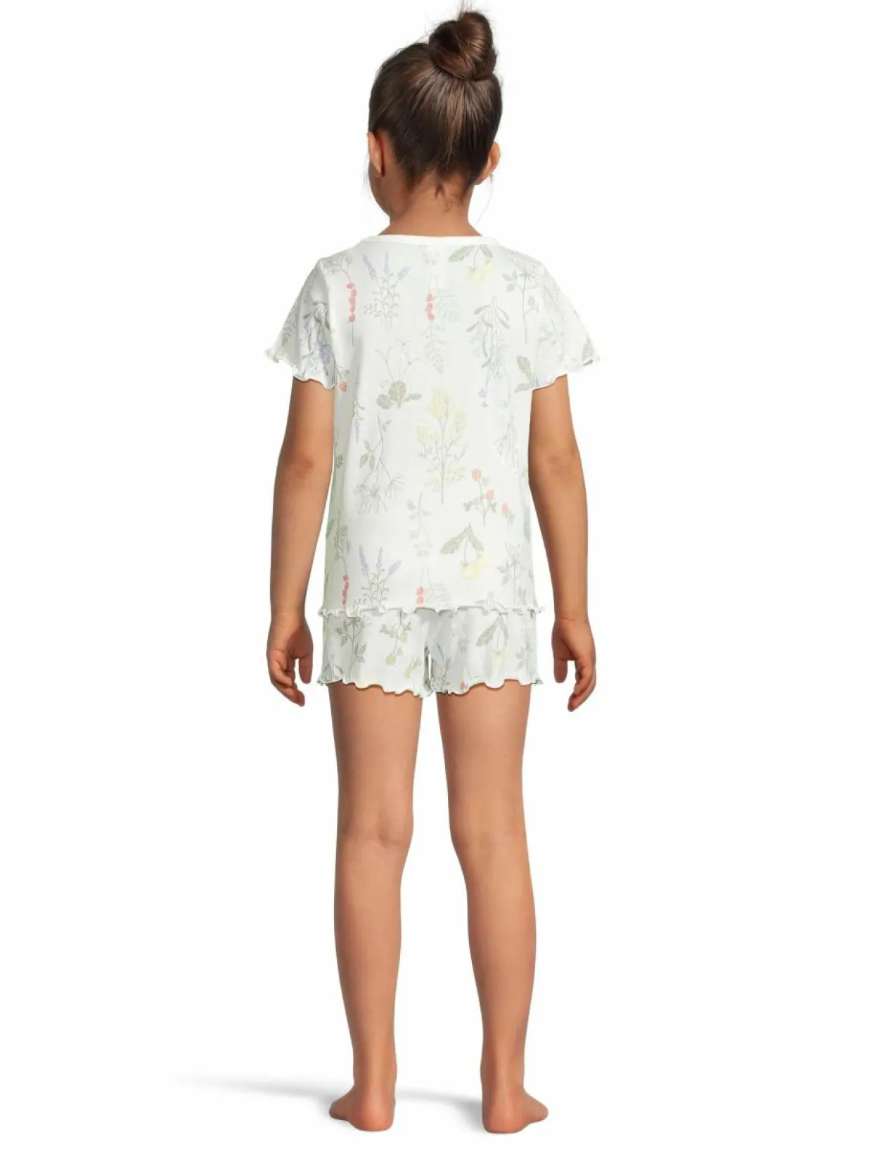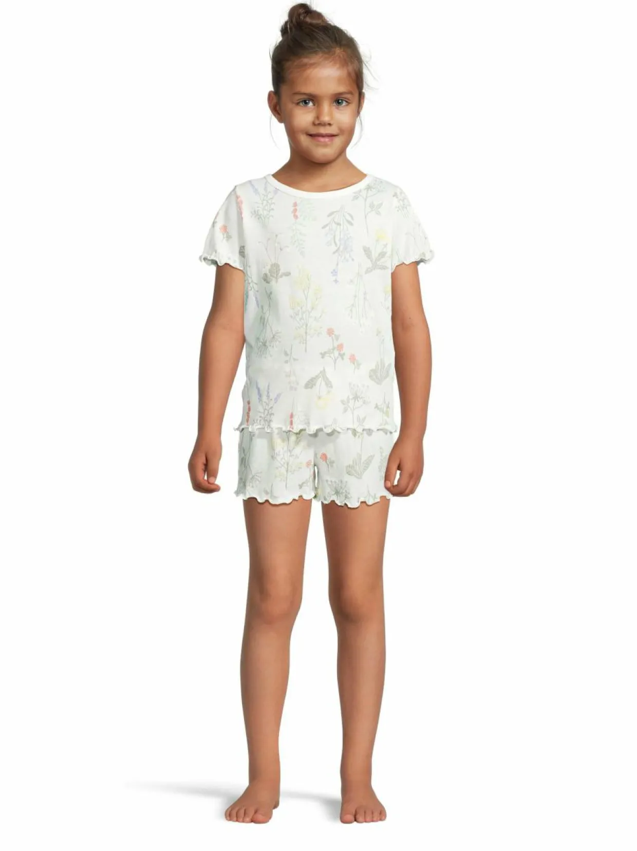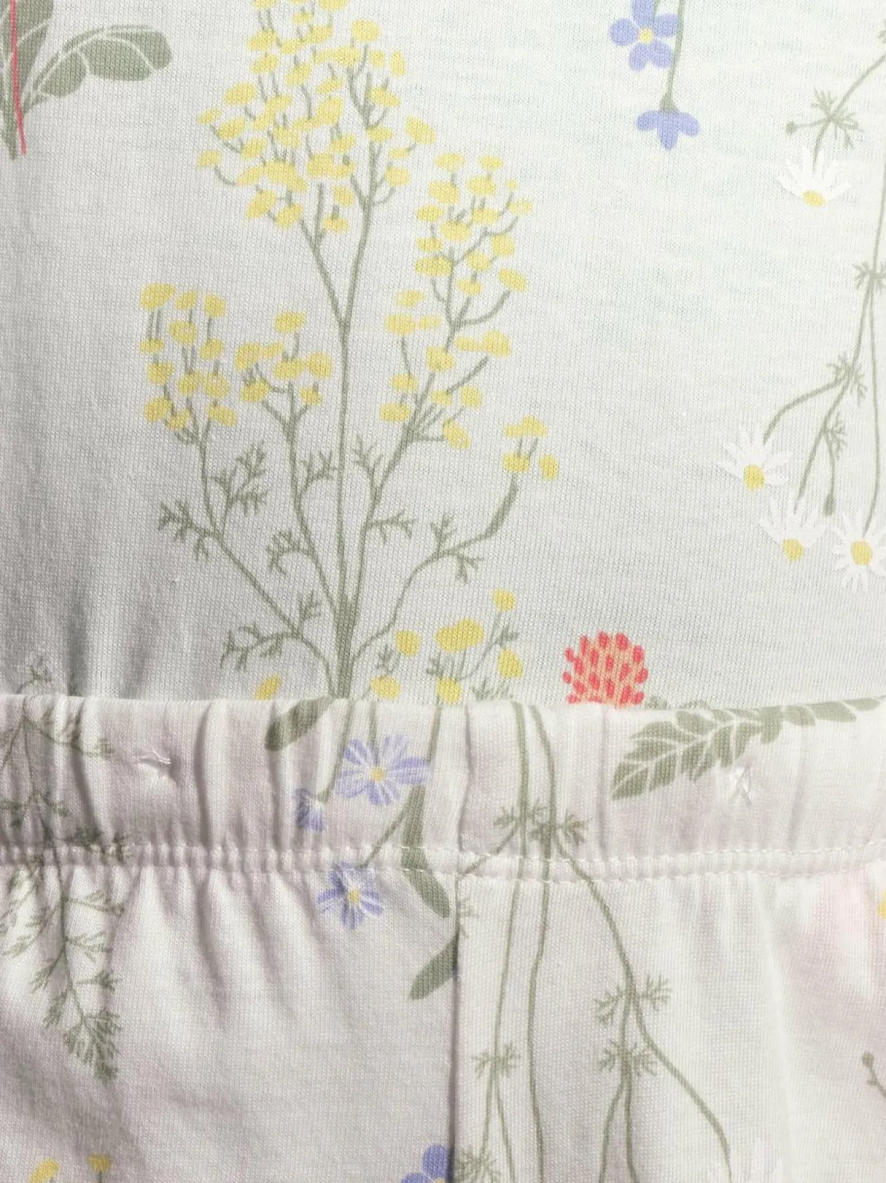 Mukava 2-osainen kukkakuvioitu pyjamasetti puuvillatrikoota, jossa on lyhythihainen paita ja yhteensopivat shortsit. Sisältää 80 % luomupuuvillaa ja 20 % kierrätettyä puuvillaa.