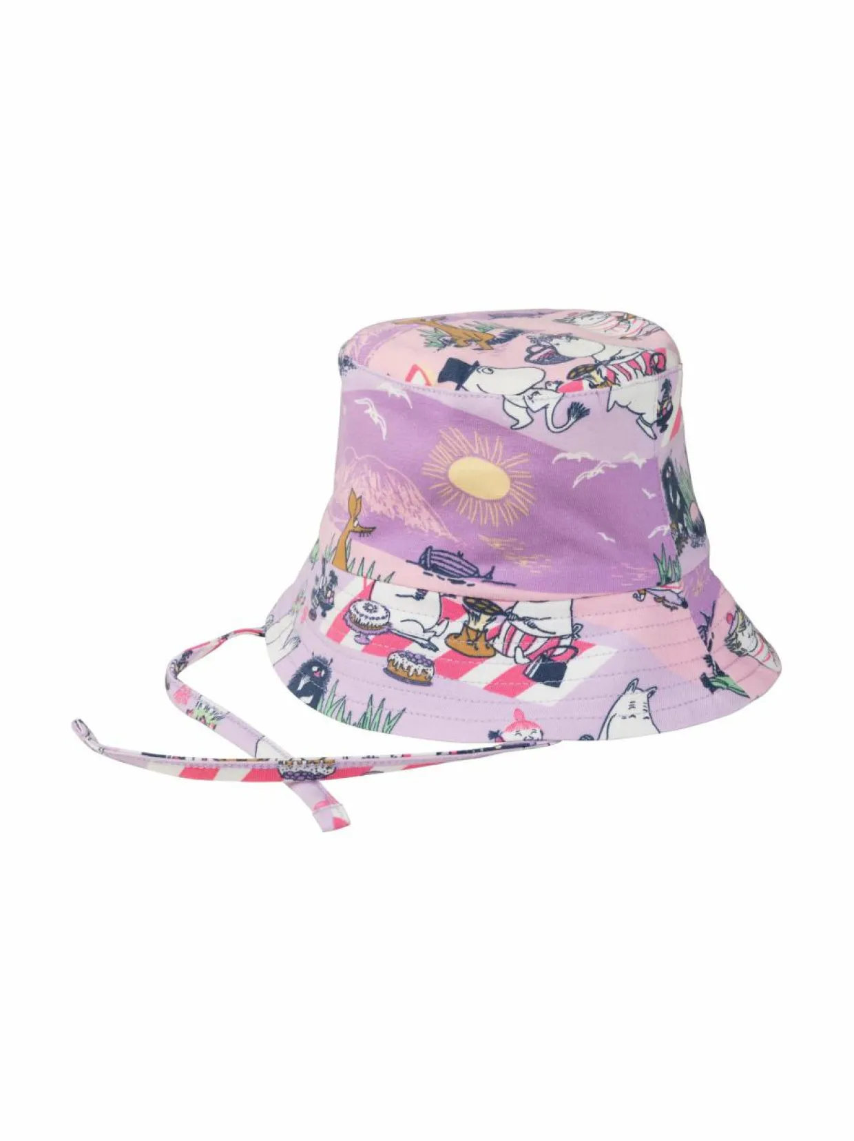 Mukava aurinkohattu vauvoille. Muumi Rantapäivä -hellehatussa on leveä lieri, joka suojaa silmiä ja niskaa sekä nauhat, jotka pitävät päähineen paikallaan. Rantahattu on valmistettu pehmeästä ja joustavasta luomupuuvillatrikoosta.