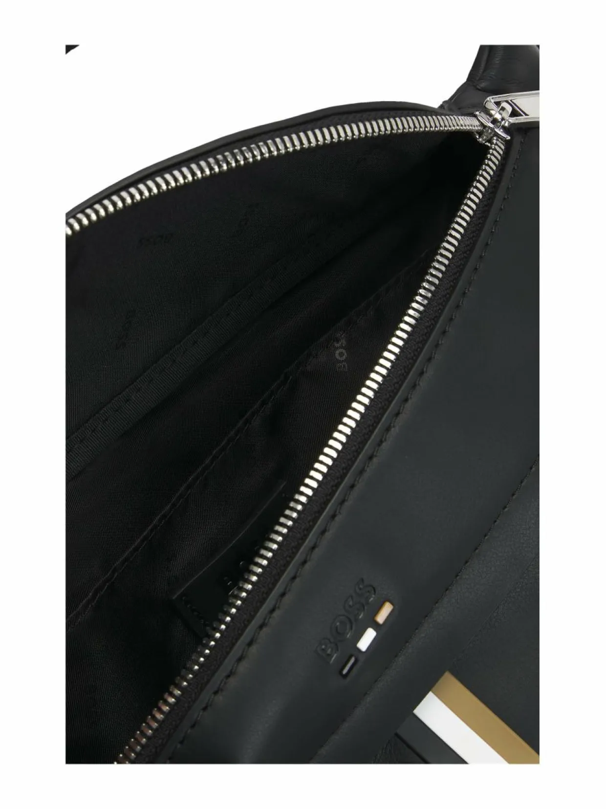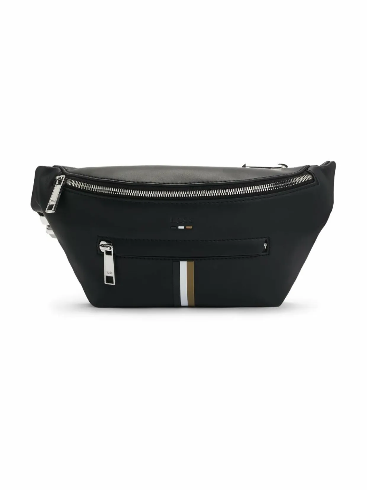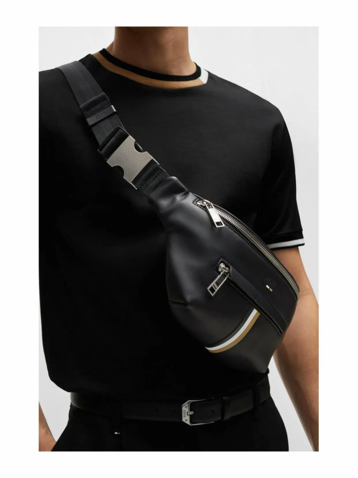 BOSS merkin moderni vyölaukku on valmistettu pehmeästä keinonahasta. Yksityiskohtana painettu logomerkki ja logoraidat. Edessä vetoketjullinen lisätasku. Päälokero suljetaan vetoketjulla. Vyölaukku sopii ihanteellisesti urbaaniin tyyliin ja on helppo yhdistää monenlaisiin asuihin.