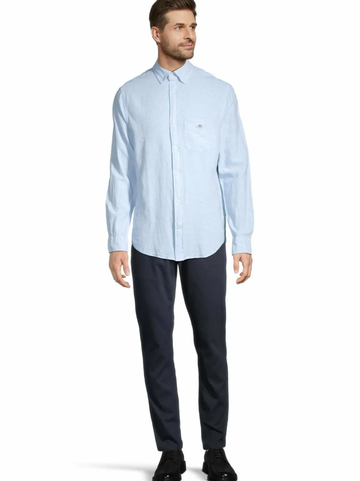 GANTin regulat fit -mallinen kauluspaita on valmistettu pellava-puuvillasekoitteesta. Paidassa on rintatasku ja napit edessä. Se on mukava ja hengittävä, ja sopii täydellisesti sekä arkiseen että juhlaan.
