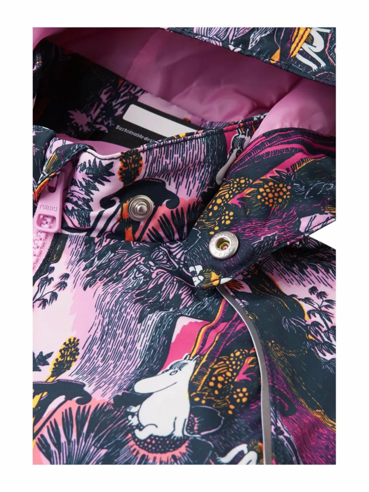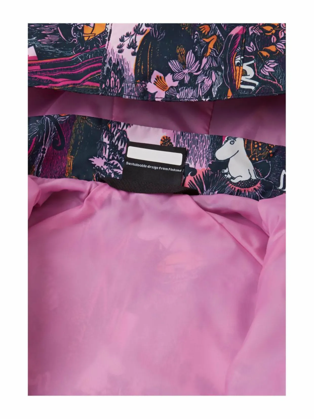 Erityistä50 % kierrätyspolyesteriä MateriaaliPolyesteri Hoito-ohjeetKonepesu 40 C. ValmistusmaaBangladesh Väri4577 ROSE PINK Avainsanatvälikausitakit, ulkoilutakki, takit, reimatec, muumi, moomin