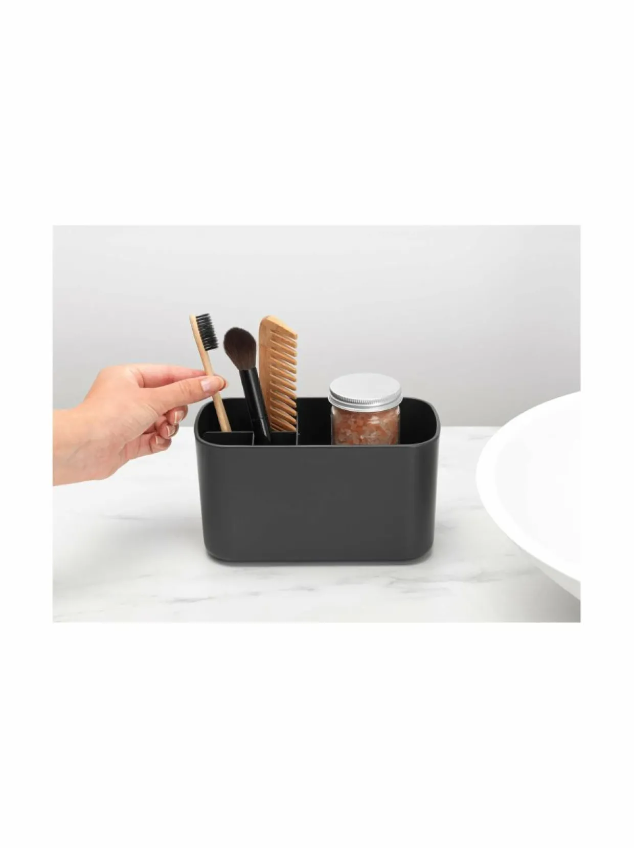 Brabantia ReNew kylpyhuoneenjärjestelijä pitää kylpyhuoneen pienet tavarat hyvässä järjestyksessä. Minimalistinen muotoilu sopii hyvin moderniin kylpyhuoneeseen. Pohjassa on ulos nostettava jaottelija, joka helpottaa puhdistamista. Pohjassa myös liukueste. Mitat 19,6 x 9,9 x 11 cm. 5 vuoden takuu.