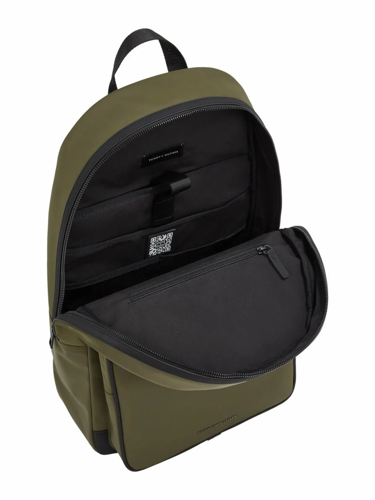 Tommy Hilfigerin käytännöllinen ja vedenkestävä reppu. Reppu on valmistettu kestävästä kierrätetyspolyesteristä ja siinä on useita taskuja, joihin voit säilyttää kaikki tarpeelliset tavarat. Reppua on helppo kantaa säädettävän olkahihnan ansiosta. Reppun takana on myös hengittävä verkko, joka pitää selän kuivana ja mukavana. Repussa on vetoketjullinen päälokero ja etutasku, sisäpuolella myös taskuja pienemmille tarvikkeille.
