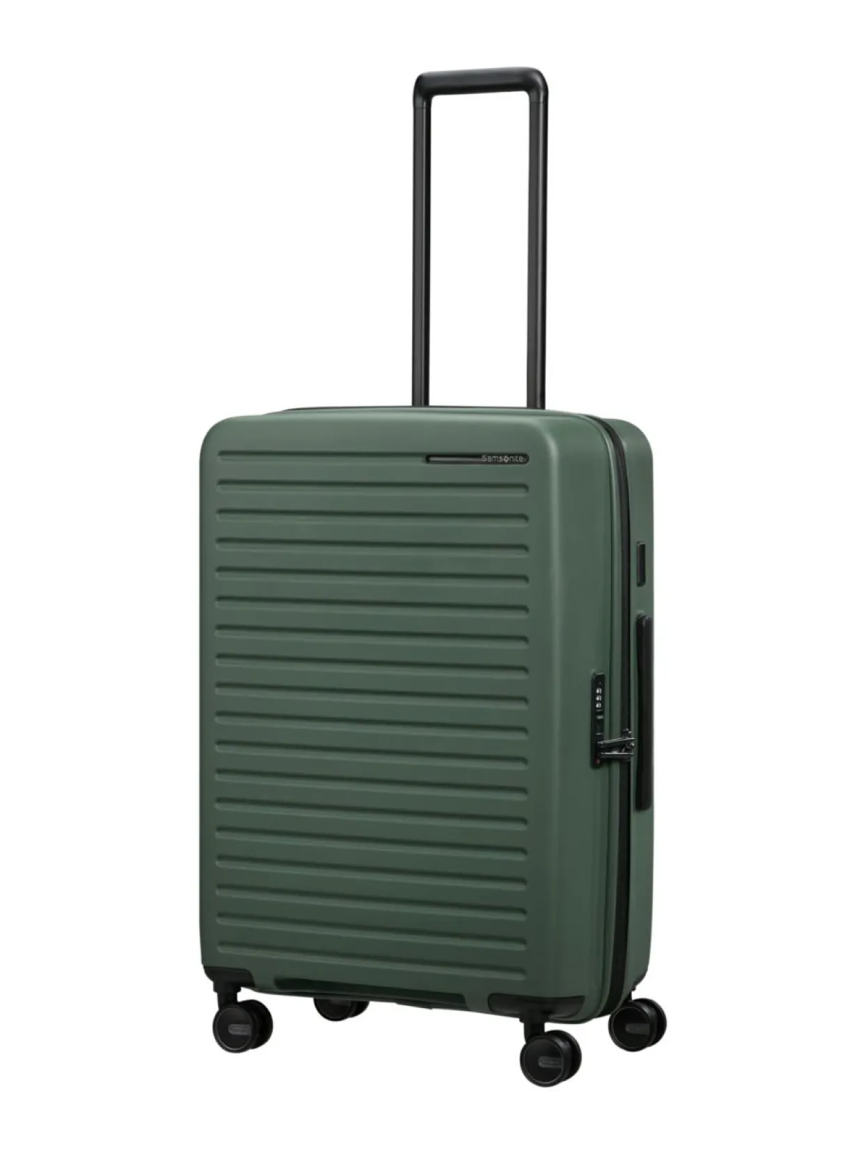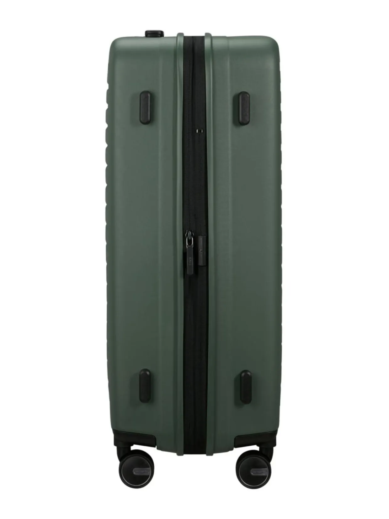 Samsonite Restackd -matkalaukku on valmistettu laadukkaasta ja kevyestä polypropeenista ja sen muotoilu varmistaa maksimaalisen tilan tavaroillesi. Saat eroteltua tavarasi taskullisella tilanjakajalla, pakkauskuutioilla ja säädettävillä henkseleillä. Laukussa on lisätilaa tuova laajennusosa. Tuplapyörät vähentävät ääntä ja tärinää, sekä takaavat, että laukun kanssa on mukava liikkua. 100% matkalaukun ulkokankaan, sisävuoren, sisäkuminauhan ja sisävetoketjun painosta sekä vähintään 90% ulkovetoketjun painosta ja vähintään 65% ulkokuminauhan painosta on valmistettu kierrätetystä PET-muovista.