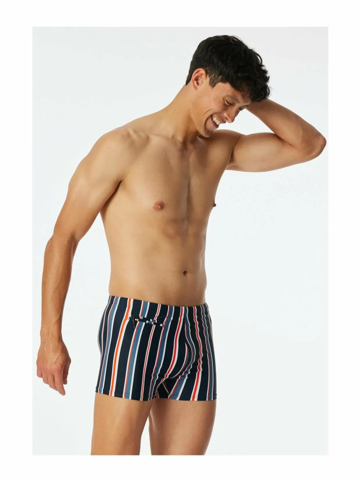 Schiesser Retro -uimahousut on valmistettu mukavasta ja nopeasti kuivuvasta materiaalista. Niissä on tyylikäs raidallinen kuviointi ja ne sopivat täydellisesti uimiseen ja auringonottoon. Uimahousuissa on vetoketjullinen tasku. Uimahousut ovat mukavat ja istuvat hyvin.