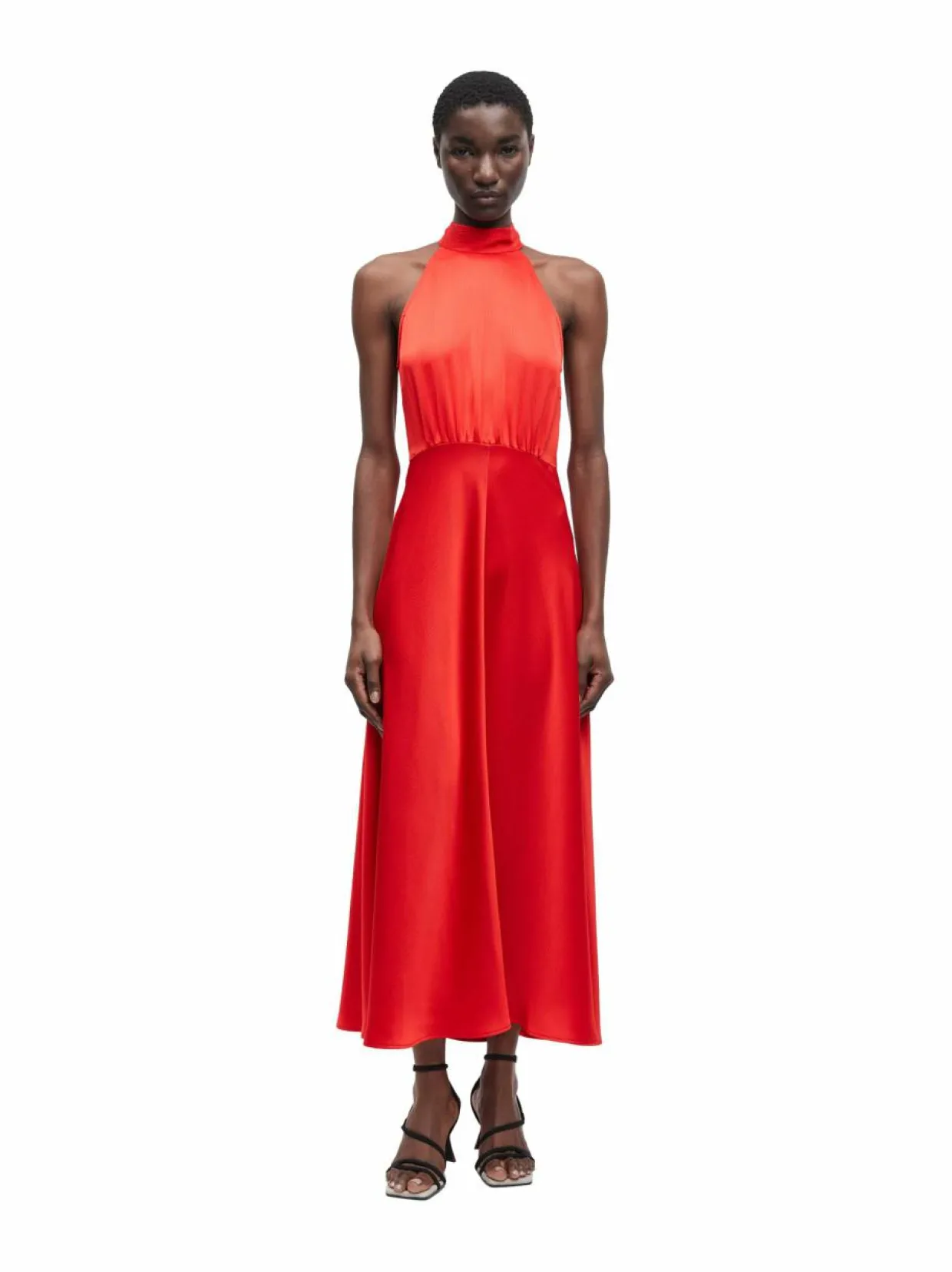 Materiaali98 % polyesteri, 2 % elastaani Hoito-ohjeetHienopesu 30 °C ValmistusmaaKiina Väri181662TCX FLAME SCARLET Avainsanatmekko, juhlamekko, cocktailmekko, iltamekko, Samsøe Samsøe, hihaton mekko, satiinimekko