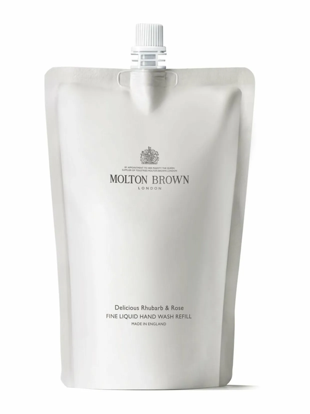Molton Brown Delicious Rhubarb & Rose Fine Liquid Hand Wash Refill -uudelleentäyttöpakkauksella täytät Molton Brown -muovi- tai lasipullosi uudelleen. Virkistävä ja kosteuttava käsisaippua antaa ylellisen ja miellyttävän puhdistavan elämyksen. Sisältää eloisan raparperin, täyteläisen vaniljan ja raikkaan greipin vastustamattomia nuotteja.