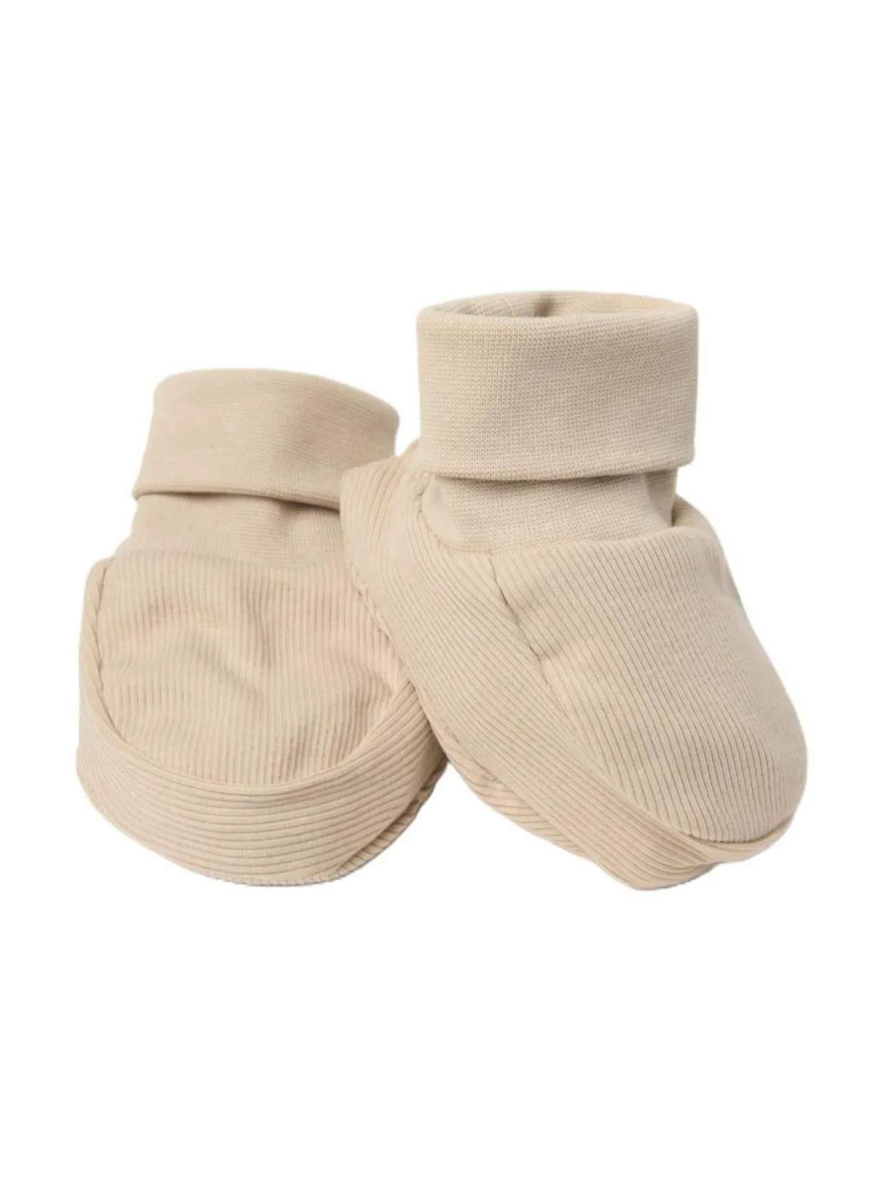 Lindexin tossut vastasyntyneille on valmistettu pehmeästä puuvillasta, johon lisää mukavuutta ja joustoa ripaus elastaania. Tossuissa on käännettävät reunukset.