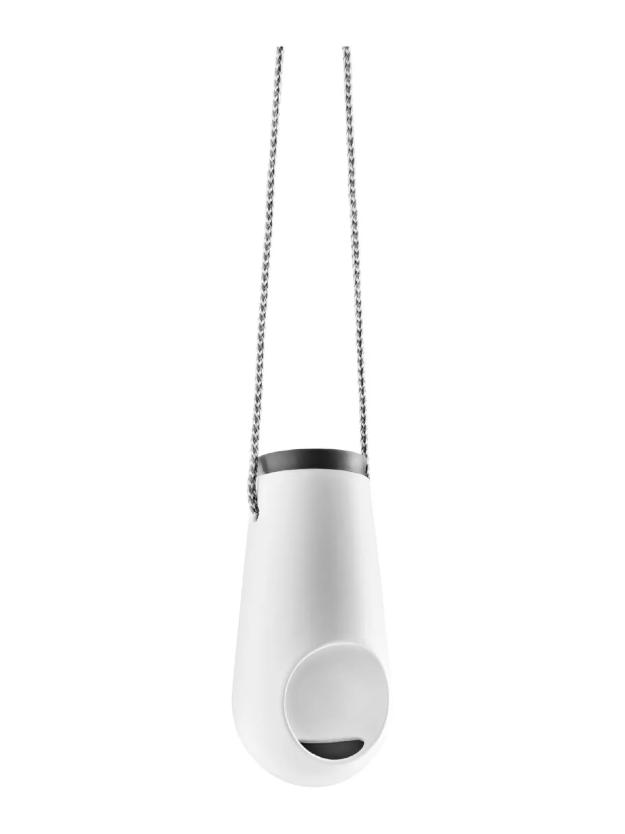 Eva Solon ripustettavan lintulaudan avulla autat kotipihan pikkulintuja selviämään kylmän talven yli. Nailonisesta narusta keraaminen lintulauta on helppo ripustaa puunoksaan tai amppelikoukkuun terassille, ja täyttäminen onnistuu kätevästi yläosan kannen kautta. Voidaan pestä astianpesukoneessa.