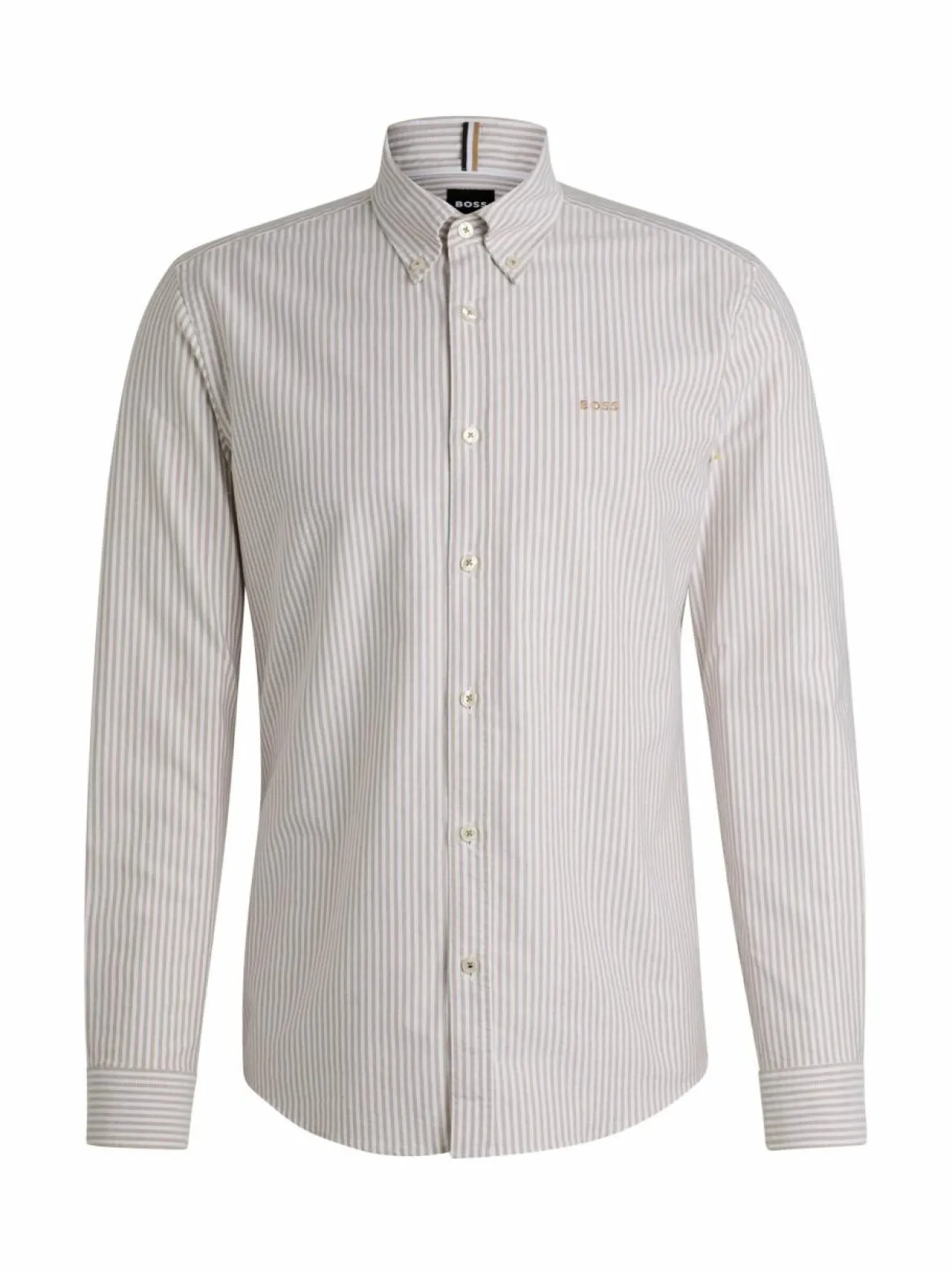 Materiaali100 % puuvilla Hoito-ohjeetEi valkaisua, ei rumpukuivausta. Silitys keskilämmöllä. Kemiallinen pesu sallittu (P). PesuohjeetKonepesu Pesulämpötila40 °C MitoitusSlim fit -kapeammin mitoitettu KaulustyyppiNappikaulus ValmistusmaaIntia Väri282 OPEN BEIGE Avainsanatboss, kauluspaita, raitapaita, raidallinen kauluspaita, pitkähihainen kauluspaita, boss paita